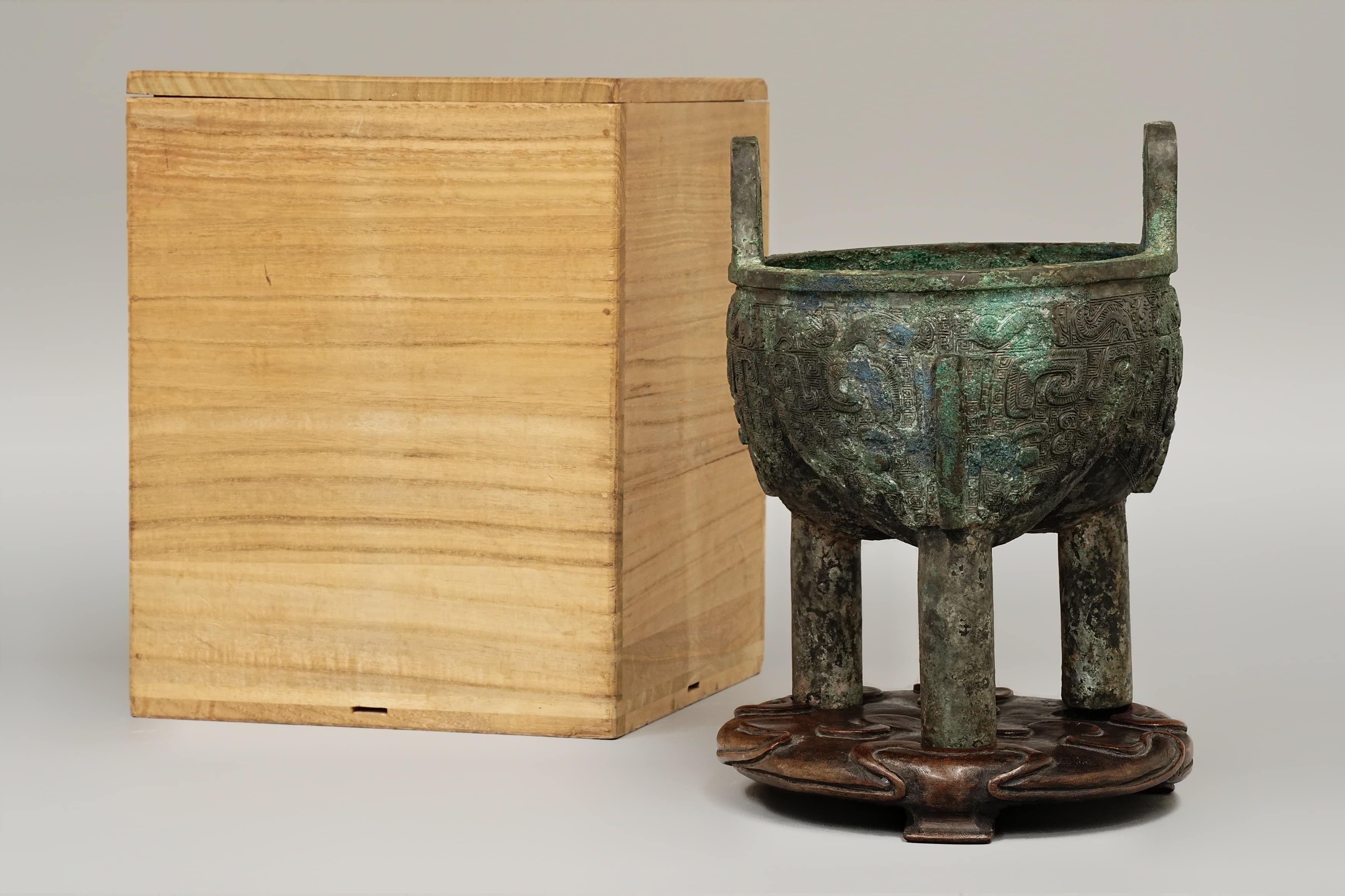 明或明以前 铜三足鼎 托附 日本桐箱附