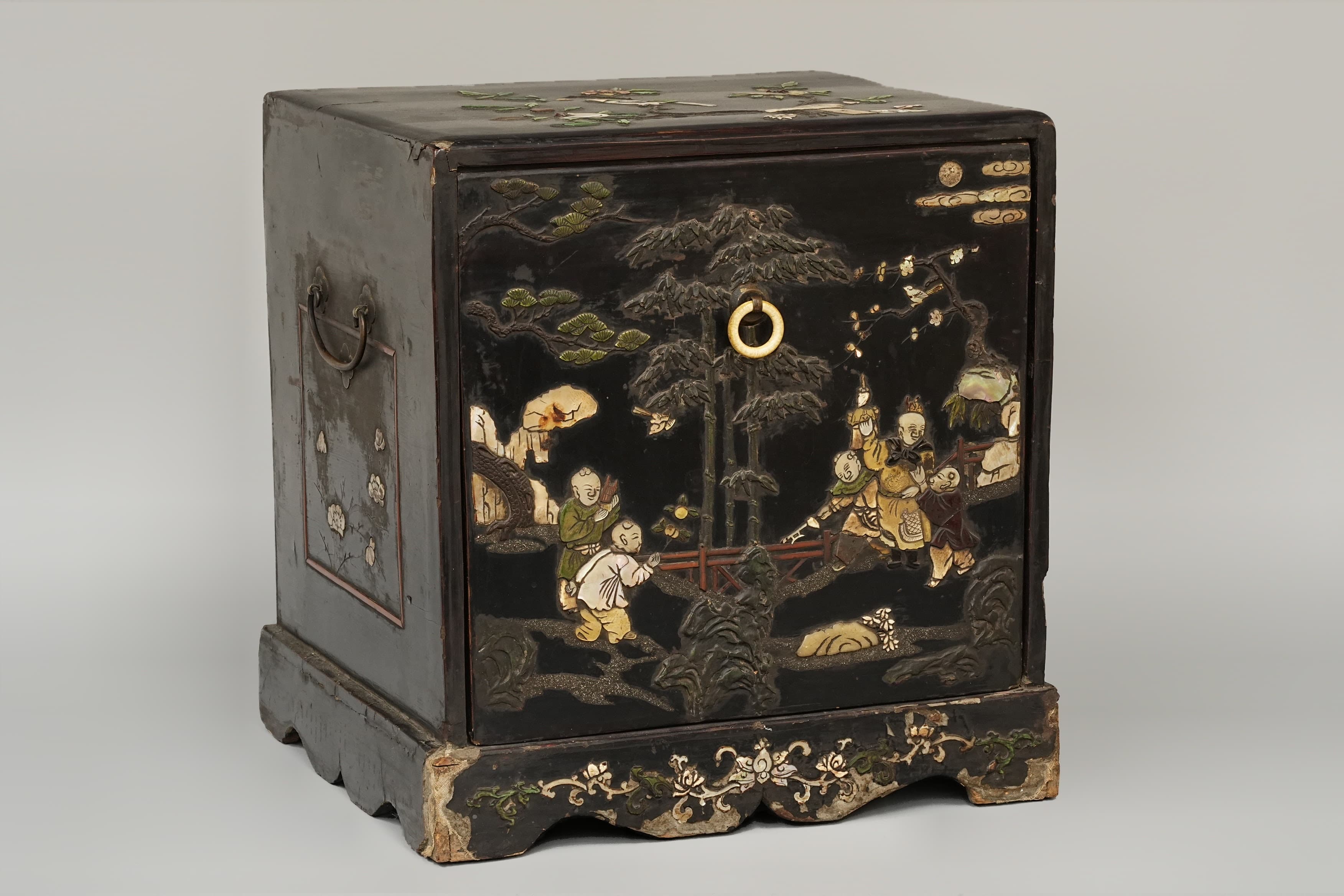 明 黑漆嵌百宝花鸟纹人物茶箱