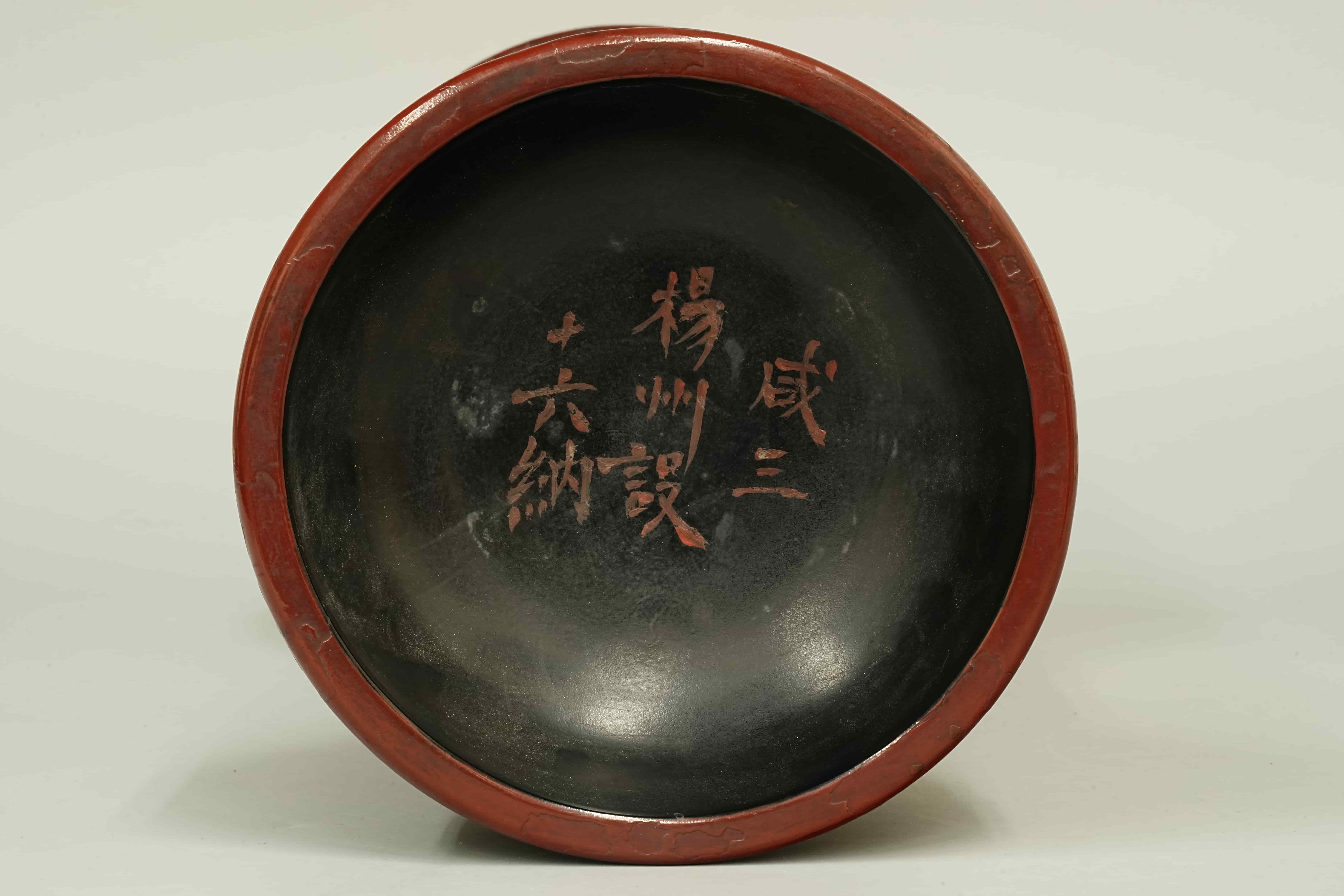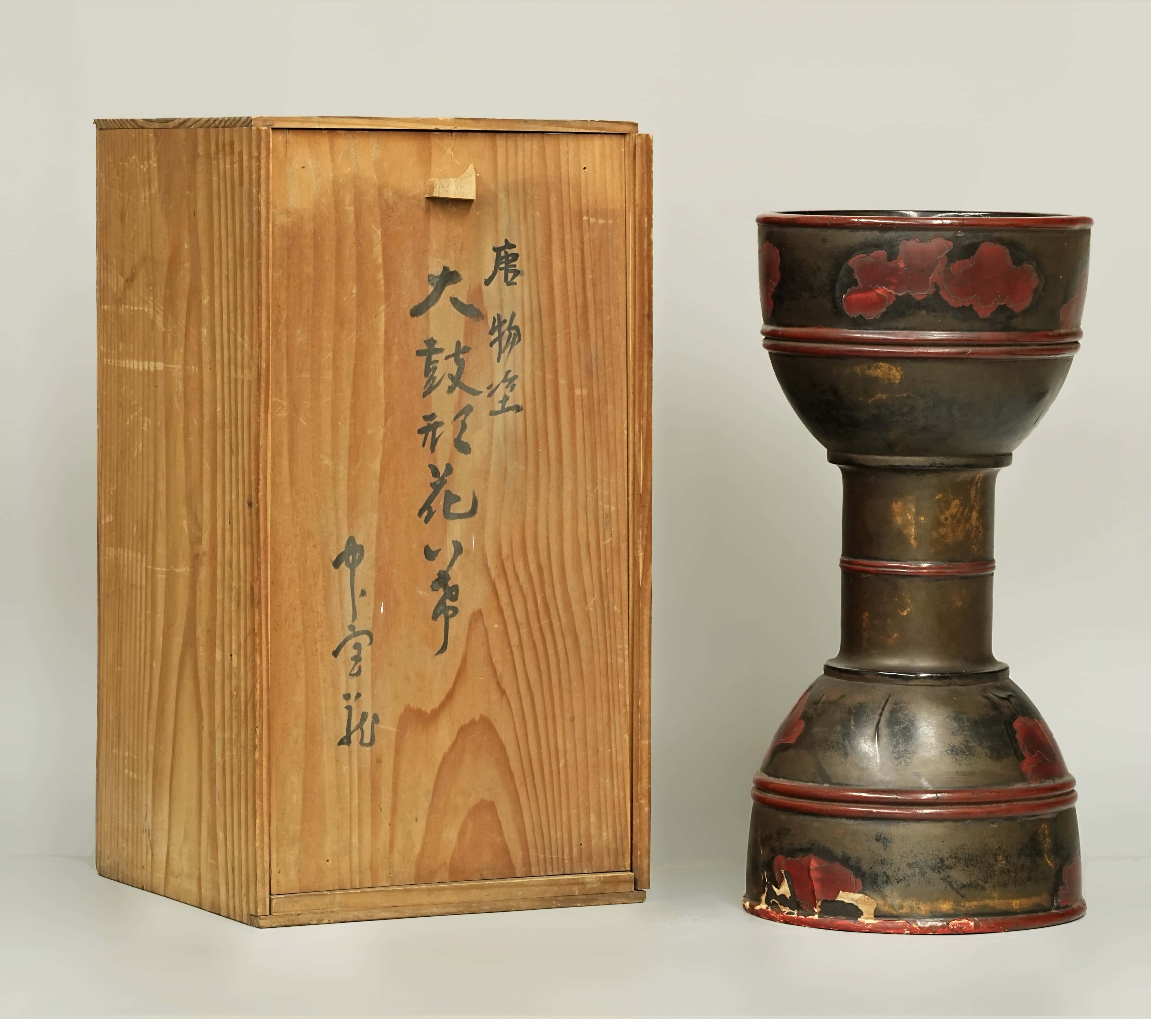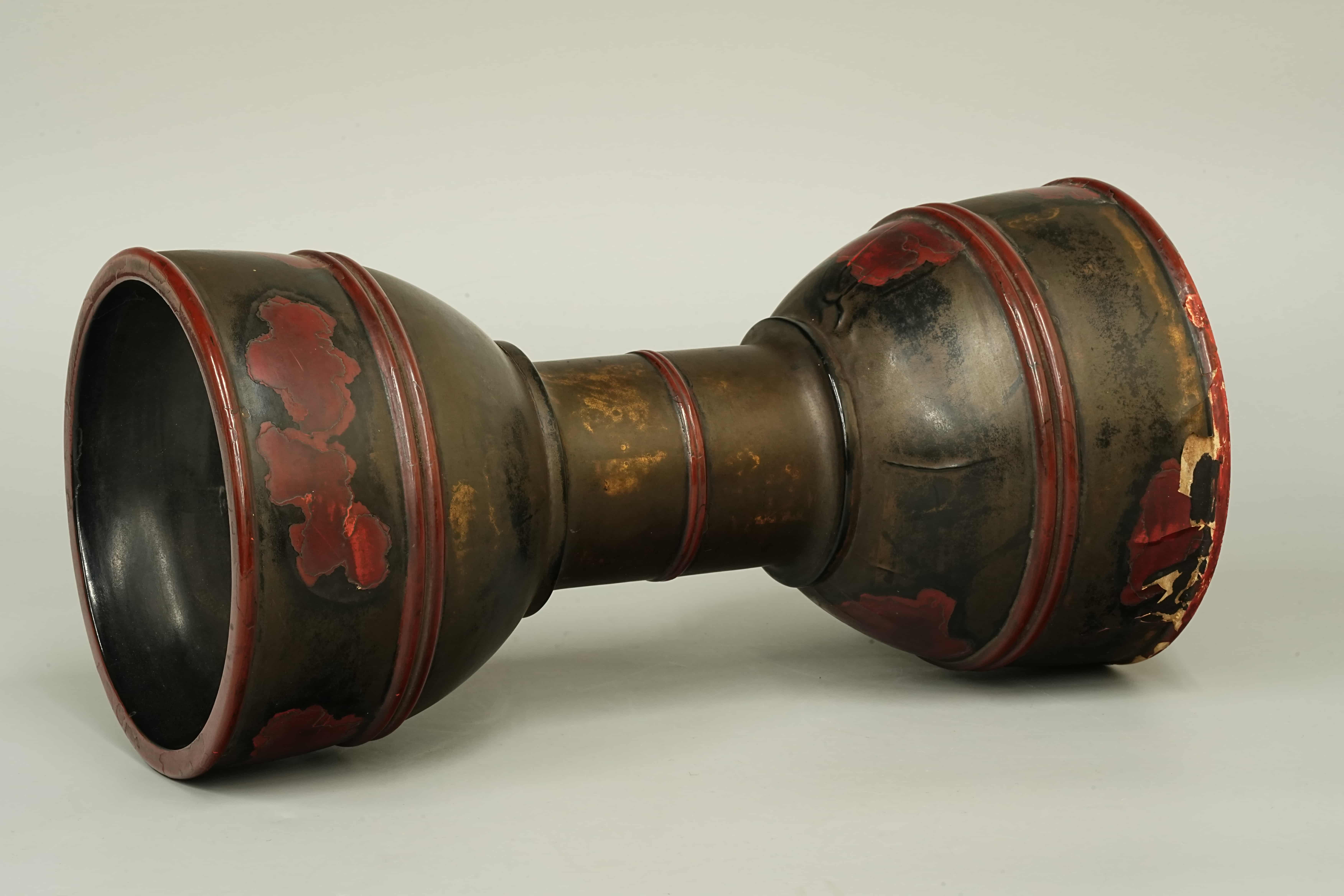 明或明以前 木胎大漆花鼓 咸三 扬州设 十六纳 日本桐箱附
