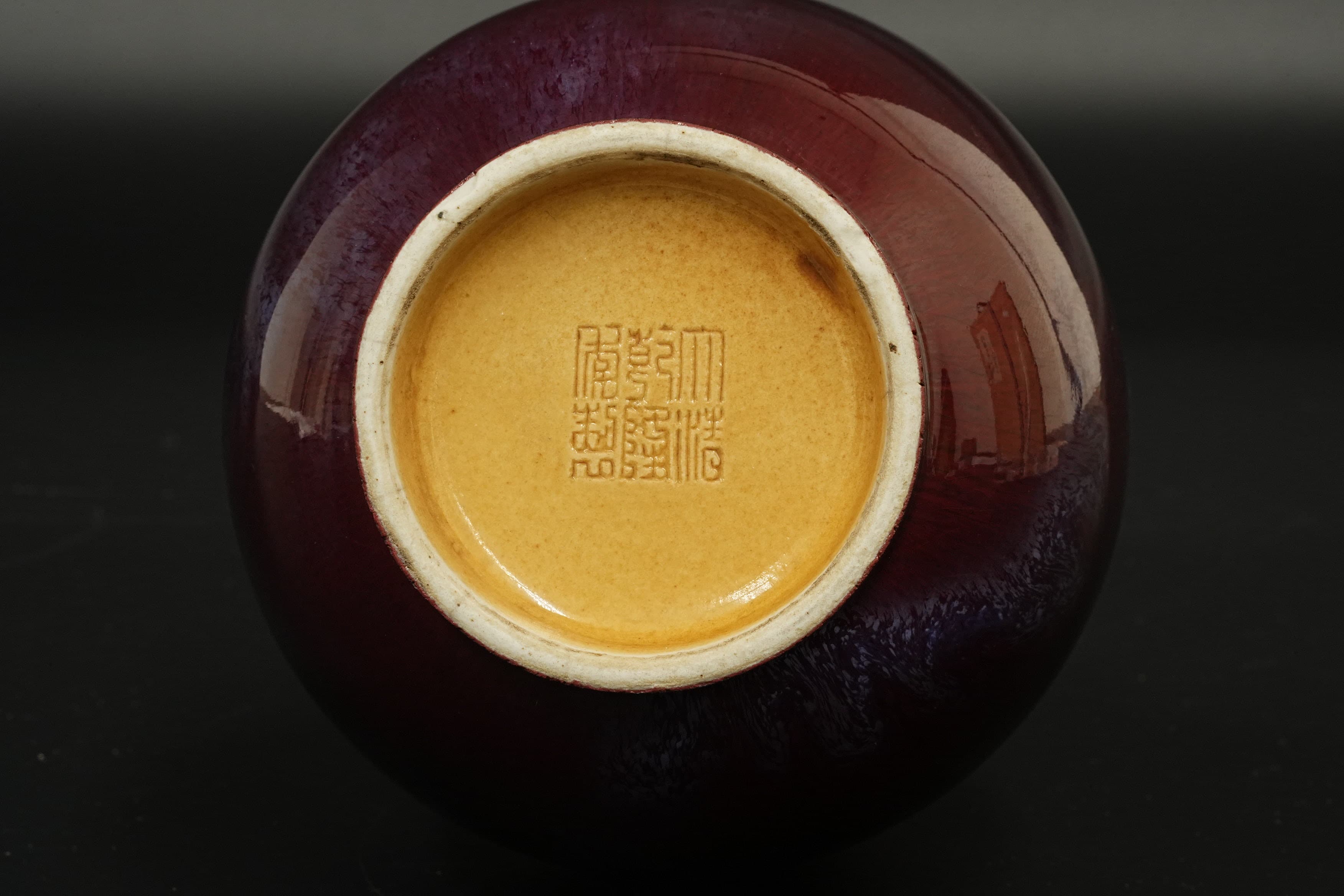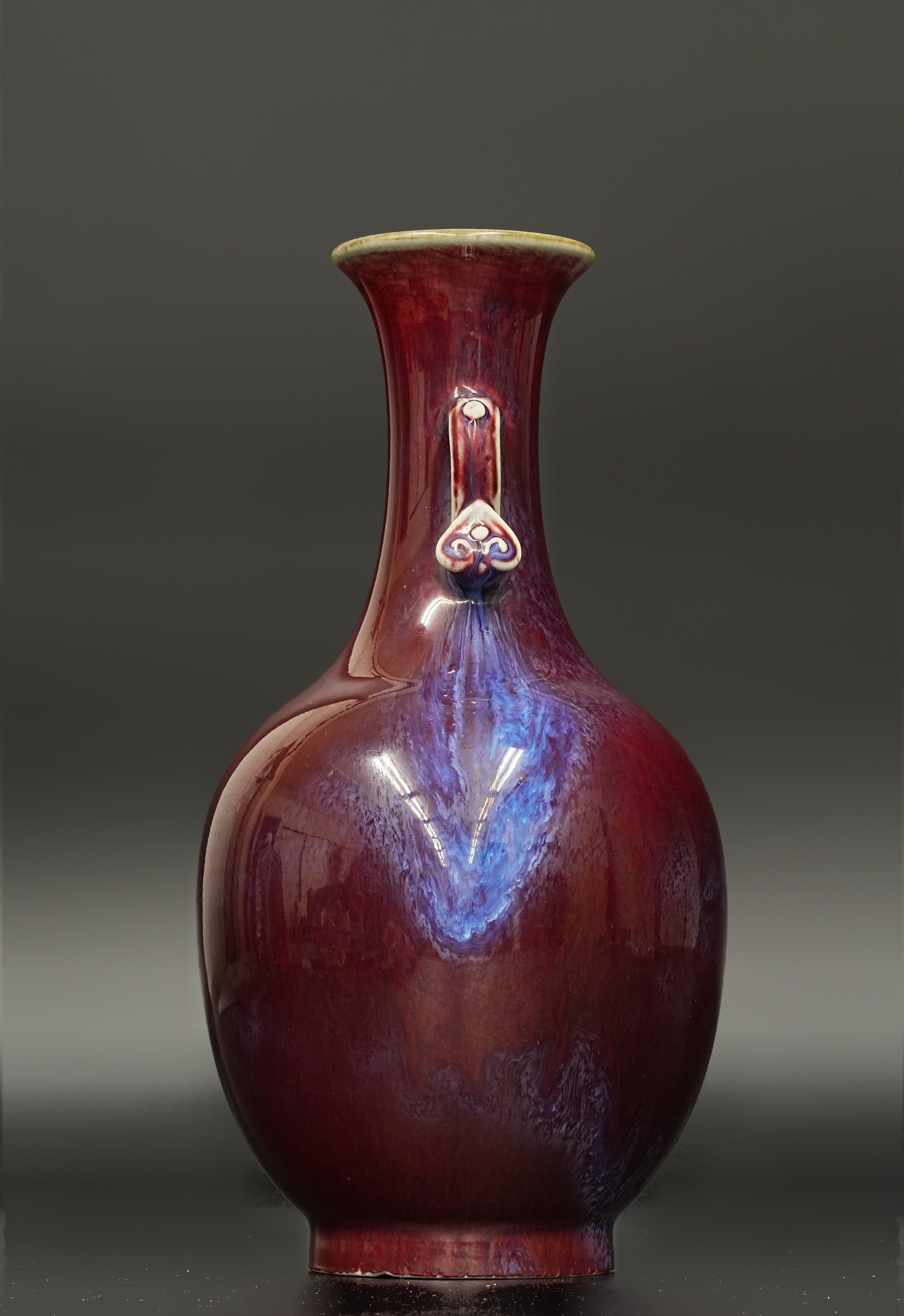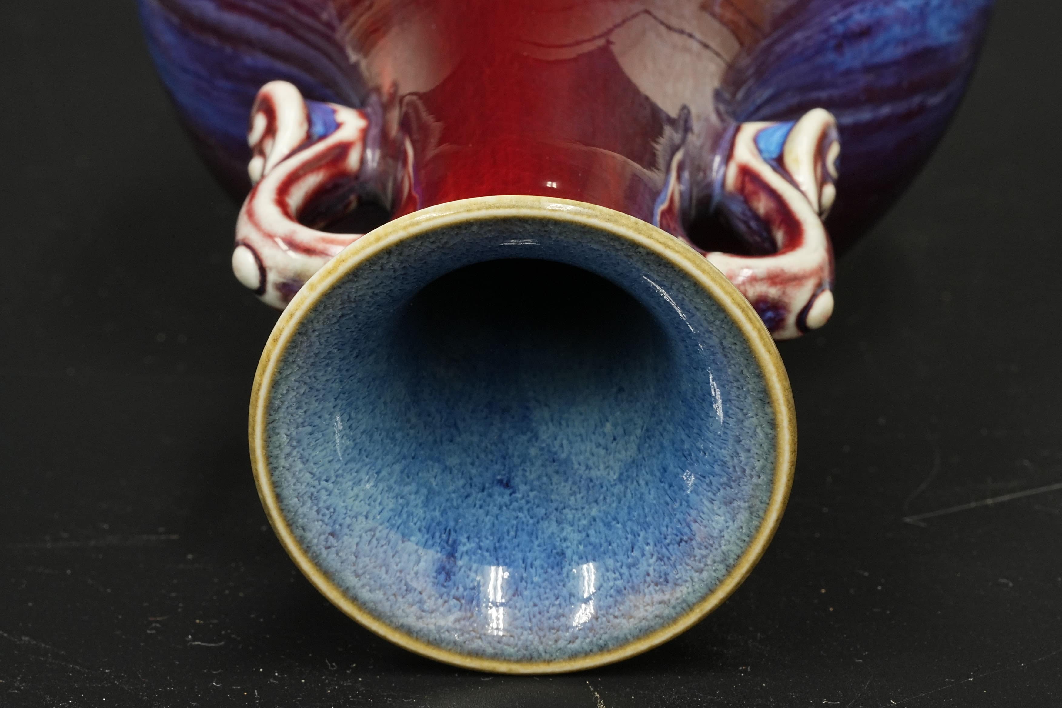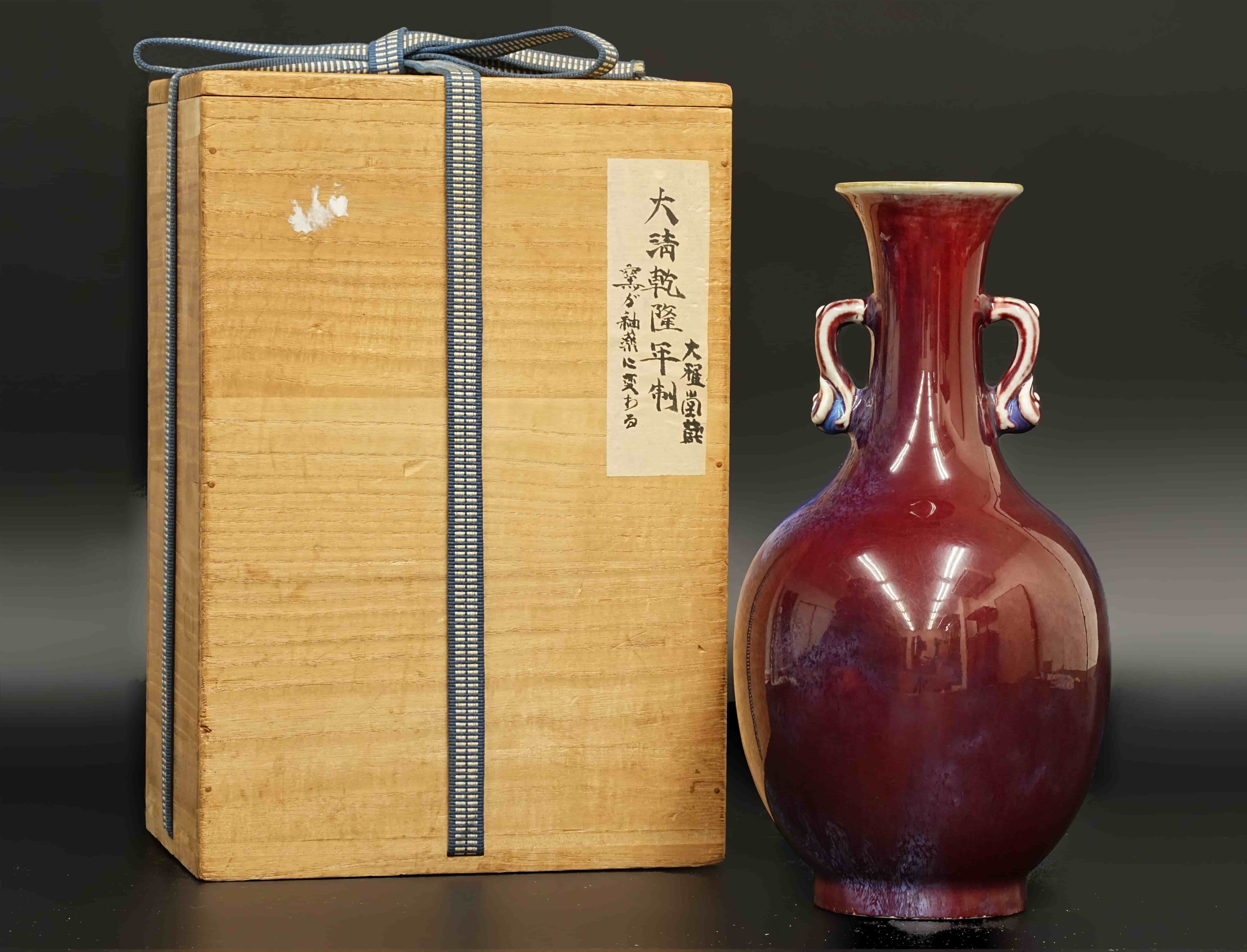 清 大清乾隆年制 窑变釉如意耳花瓶 日本桐箱附