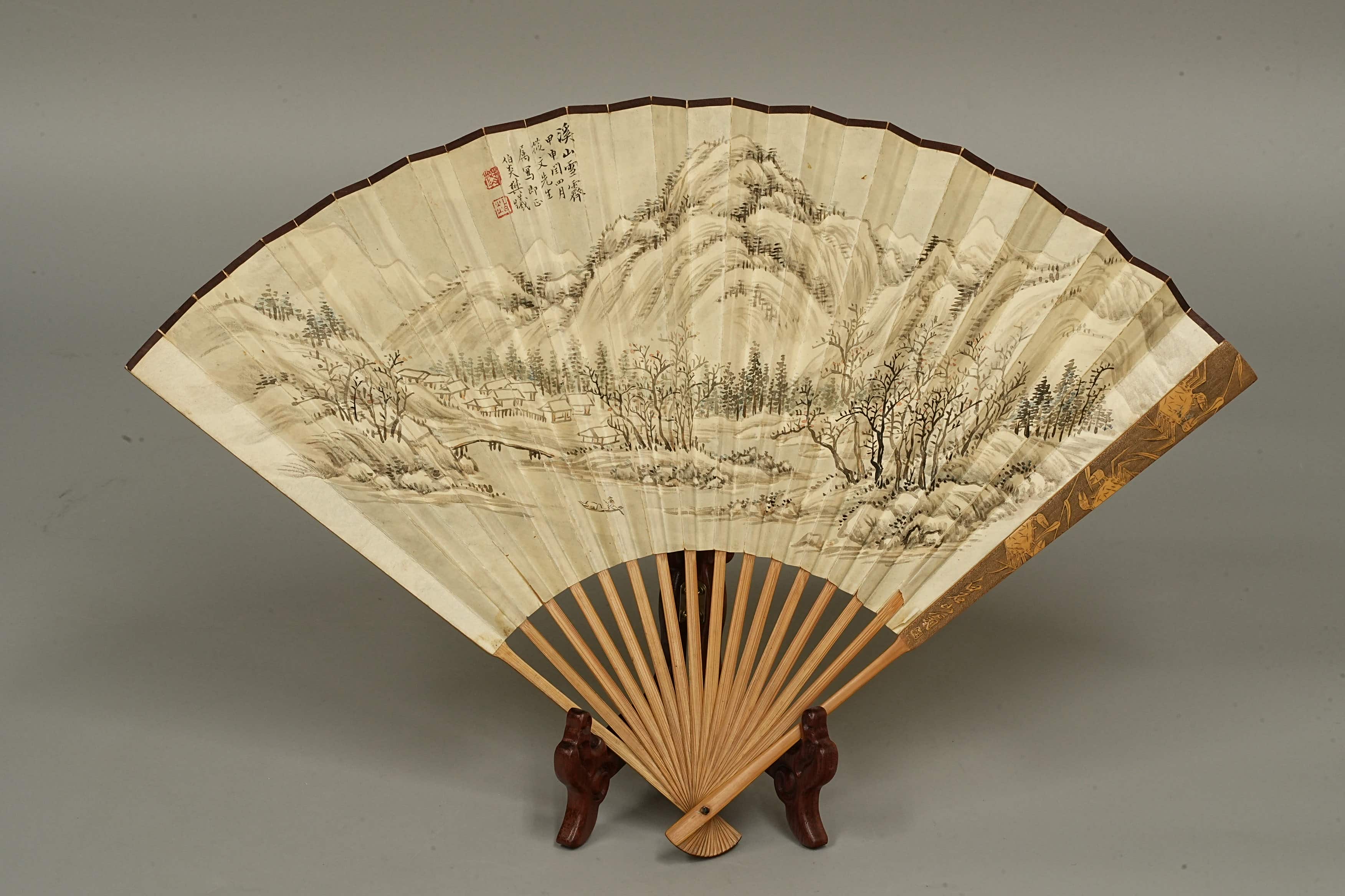 齐白石刻扇骨 樊熙山水 童大年书法 纸本成扇