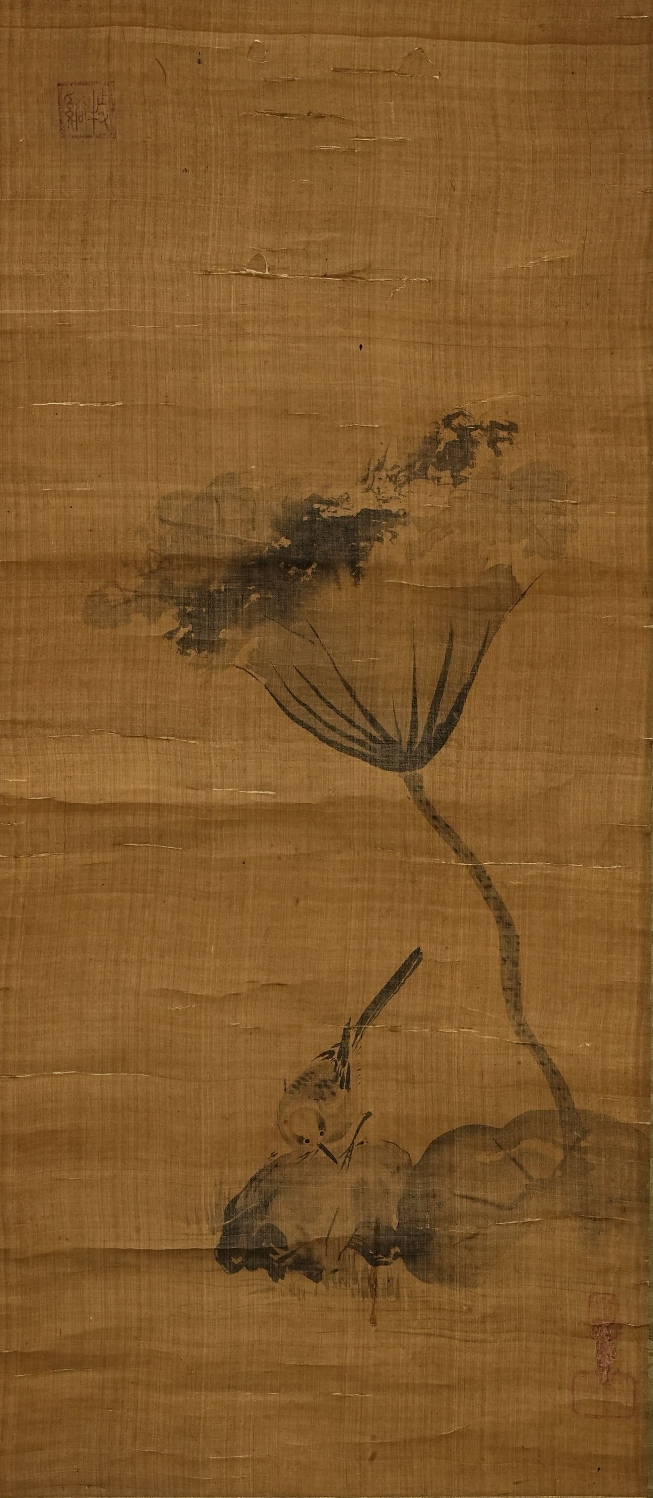 佚名 花鸟图 绢本挂轴 日本桐箱附