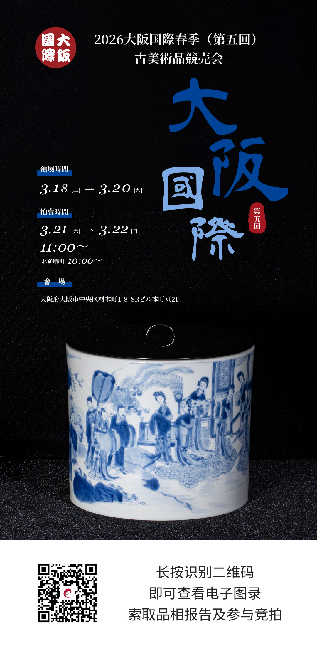 2026年3月21日至22日,大阪国际再度启槌,隆重推出「2026大阪国際春季(第五回)古美術品競売会」。本次拍卖精心策划7大专场,汇聚673件艺术珍品,阵容齐整,生货云集。连拍臻将全程直播,并提供实时同步竞拍技术和服务支持。