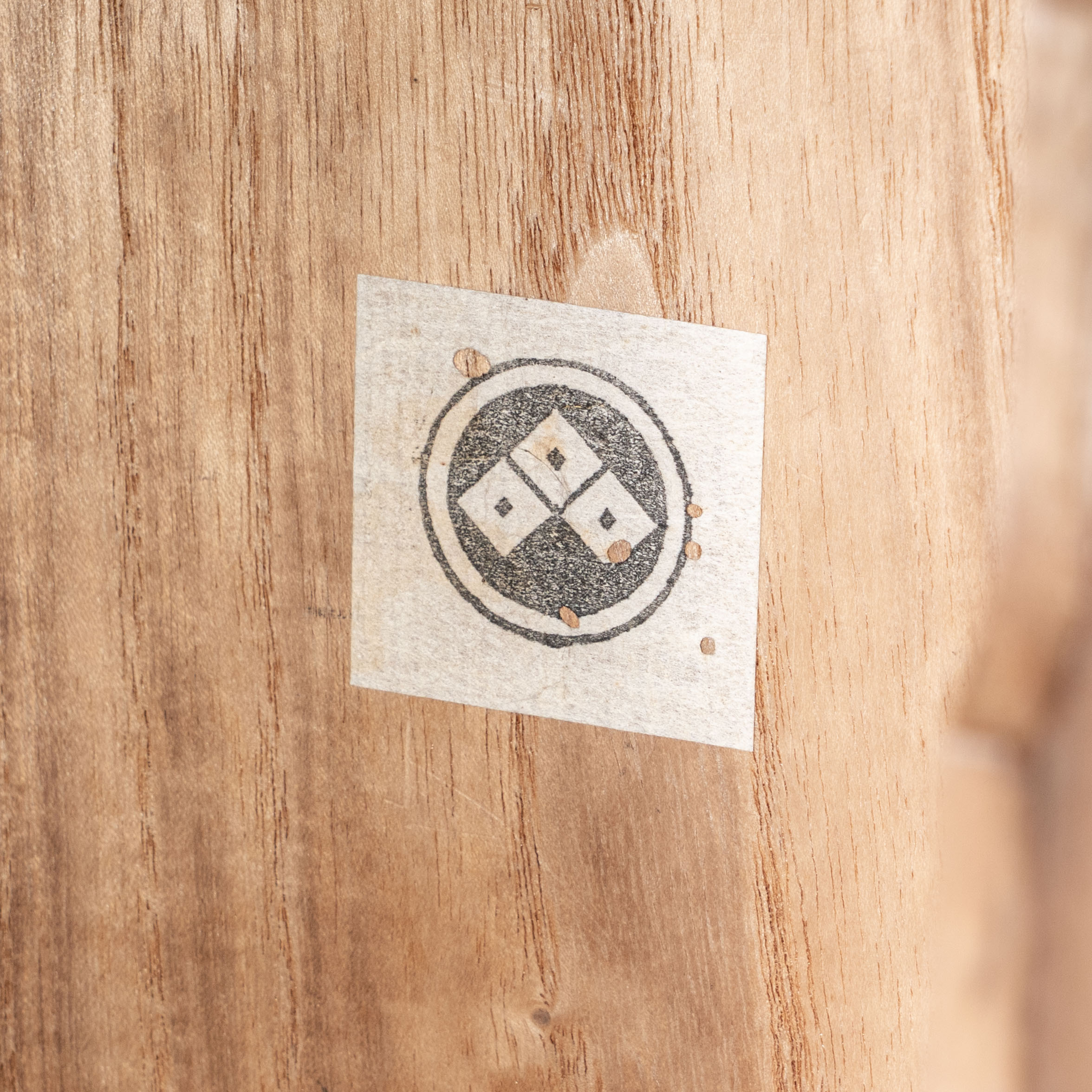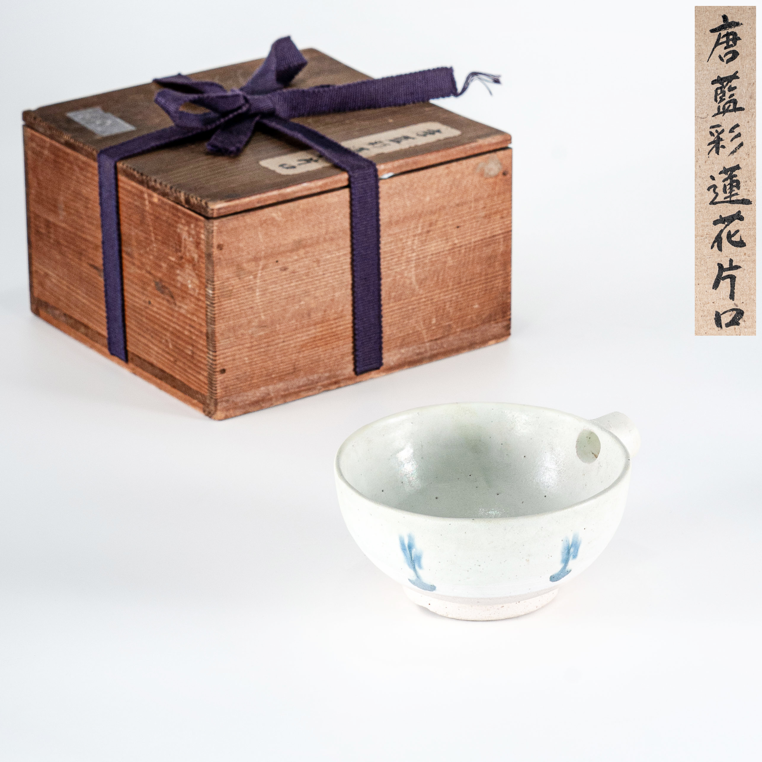 尤为珍贵的是,随盒附有一张记录其来源的纸条,上书“安乐庵修复”。此款识并非指器物本身有过修补,而是特指1983年日本著名茶室“安乐庵”(千利休长子千道安所筑)进行修复重建时,主持工程的三重县专修寺为支付巨额修缮费用,将寺内部分珍藏茶器转让给资助工程的大施主。作为该段历史的见证物,此件茶入不仅工艺精湛,更承载了日本茶道史与重要寺院传承的深厚人情往事,是一件集艺术美感与收藏厚度于一体的茶道重器。