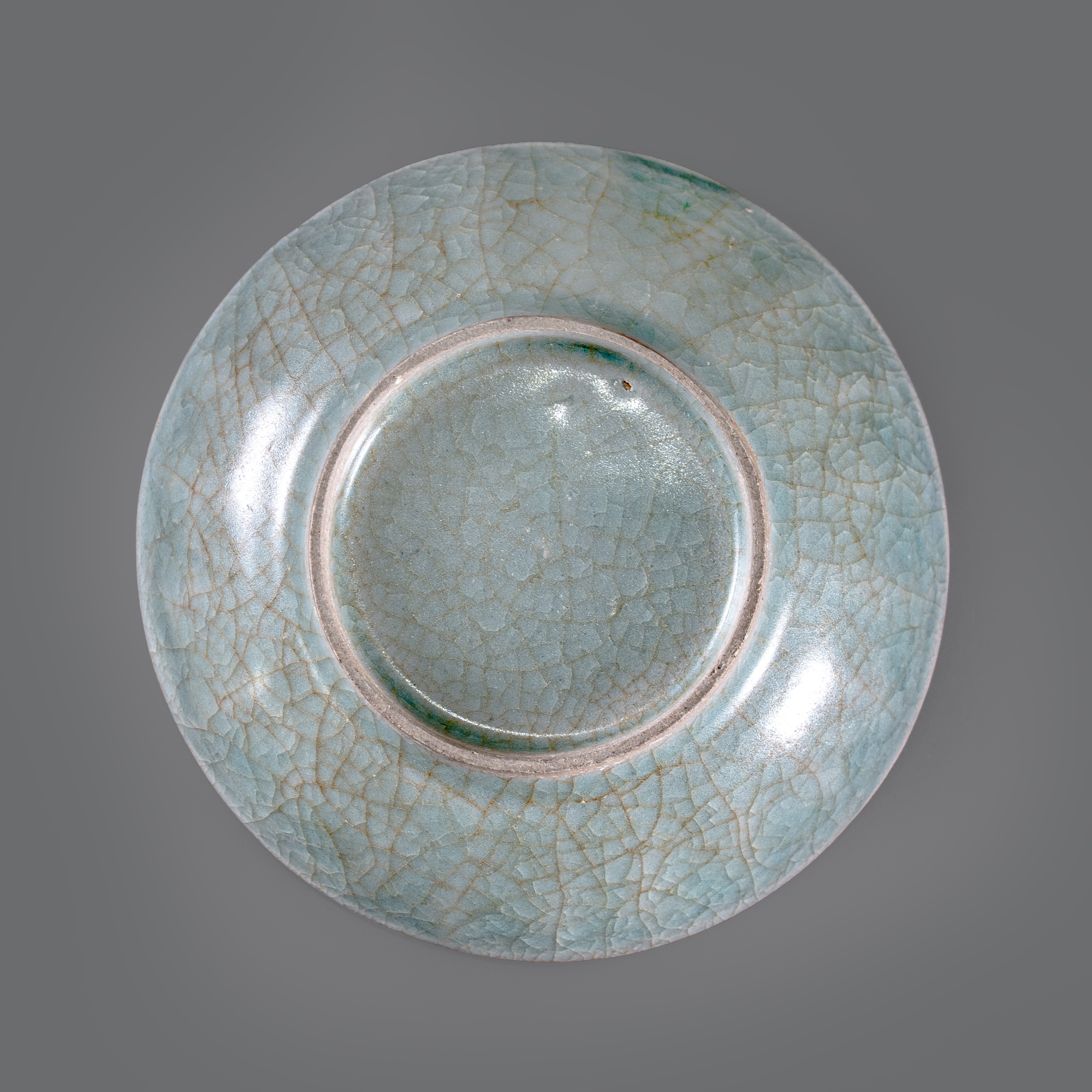 翻转可见圈足修削利索,足端切平,露胎处呈现坚致的灰白色,干老自然。此碗不仅在视觉上呈现出由于还原气氛控制精准而产生的“翠亮”感,更在工艺演进链条上,完整记录了北宋晚期龙泉窑如何通过胎釉改良,从民窑体系向官式审美跨越的真实状态。