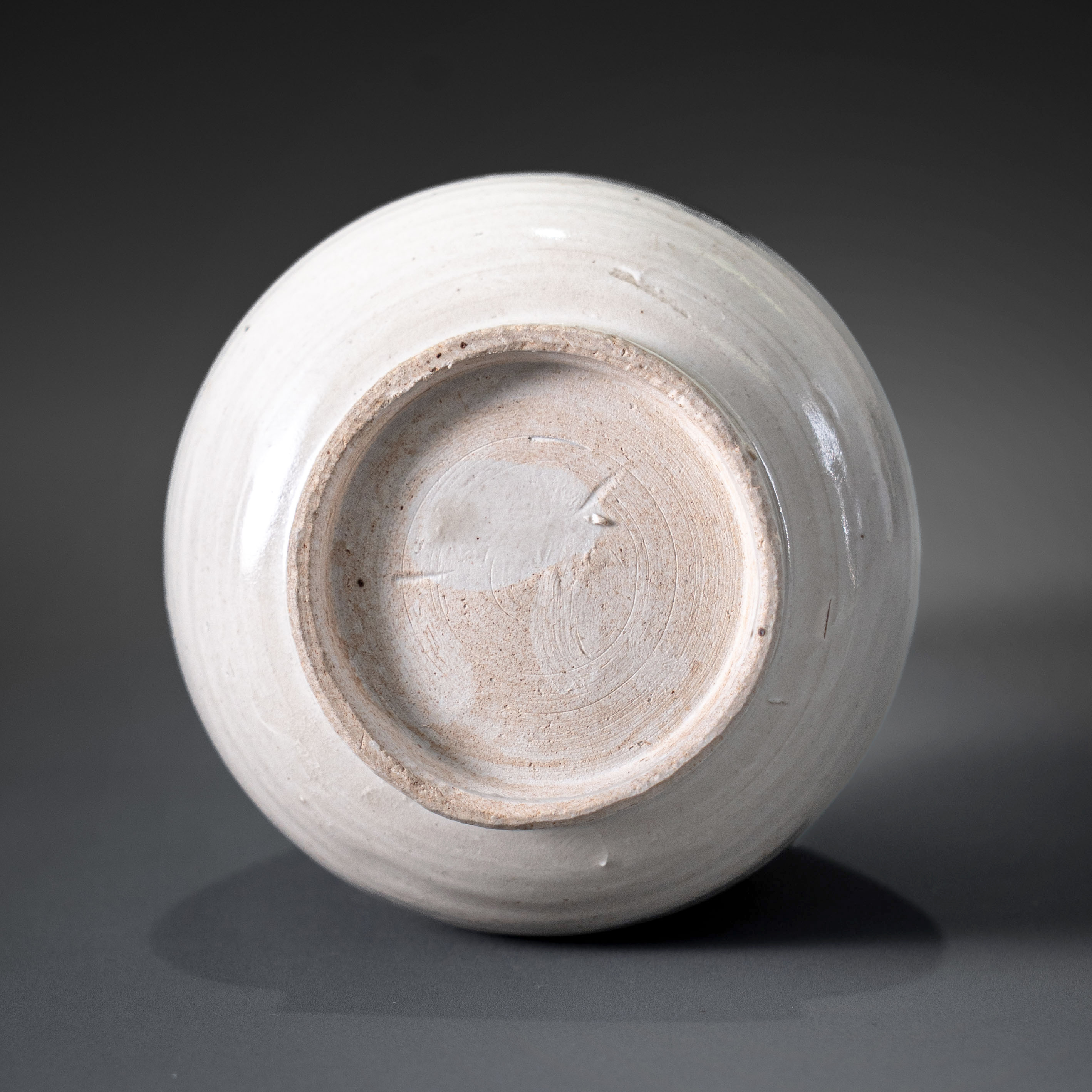 翻转可见圈足修削利落,足墙细窄,足端露胎处干老洁白,可见胎土淘洗之精细。此瓶全器无纹饰,纯以造型的线条美与釉质的温润感取胜,完美契合宋代文人追求的“大巧若拙”的审美意趣,是宋代定窑白瓷中不可多得的陈设重器,具有极高的艺术与收藏价值。