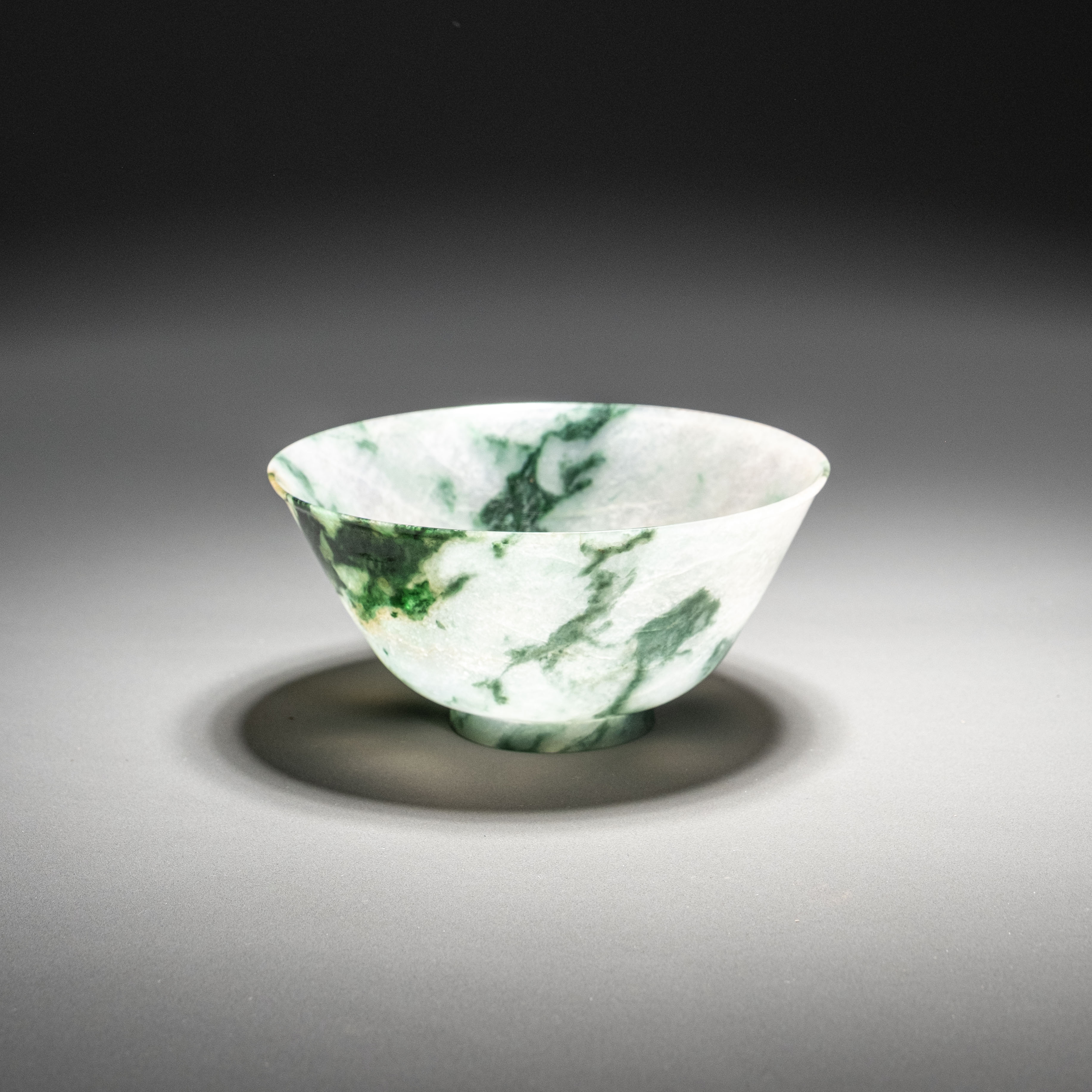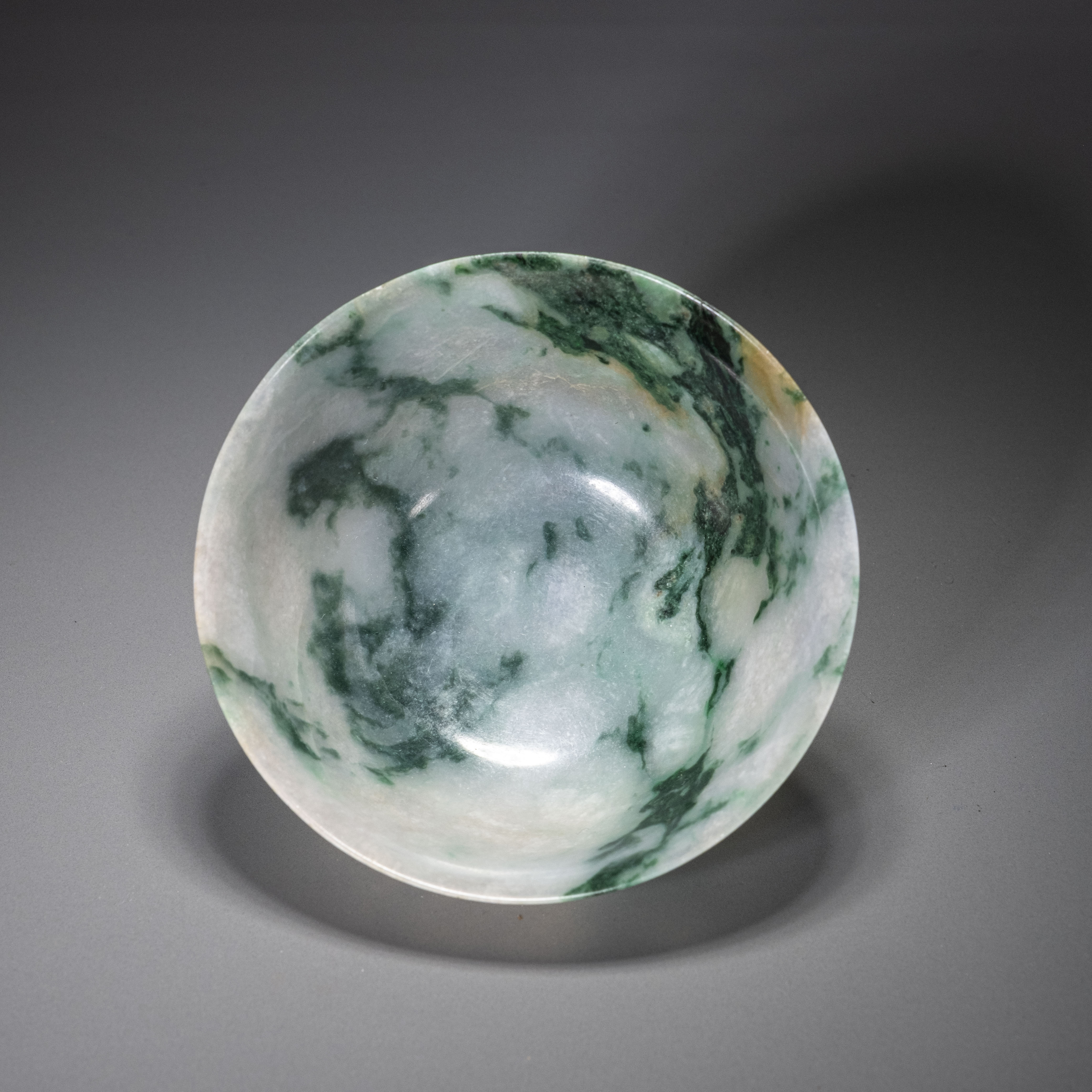 在釉色表现上,此碗展现了北宋耀州窑改良后的巅峰水平。釉面翠亮莹润,色泽深邃而明快,不同于五代时期耀州窑较为含蓄、偏灰的调子,这件器物的釉水更具透明度与玻璃质感。釉层随器型起伏而产生深浅变化,花棱转折处釉薄处色淡,积釉处则浓翠欲滴,视觉层次极其丰富。