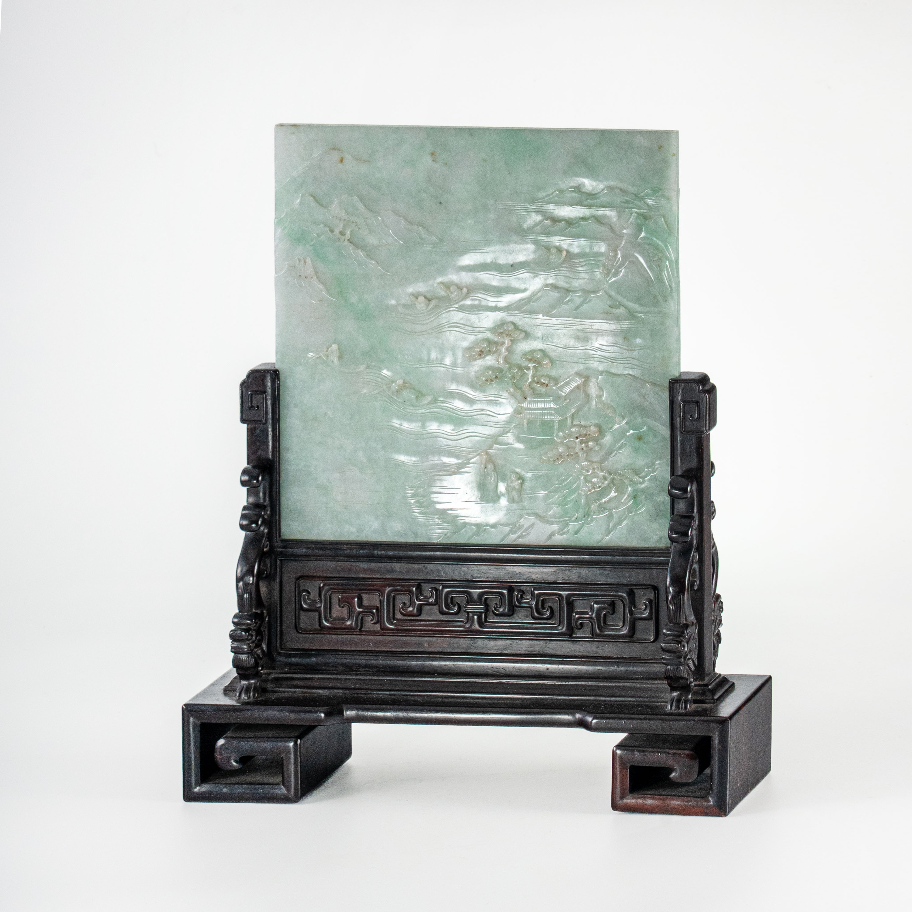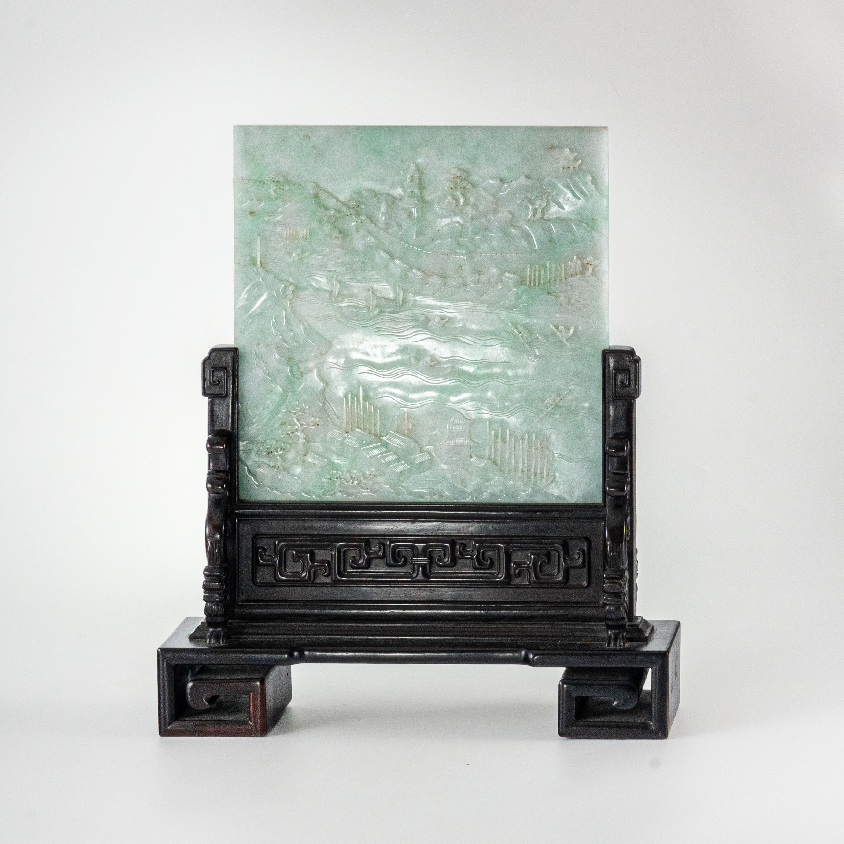 清 翡翠雕刻山水亭樓人物紋屏風