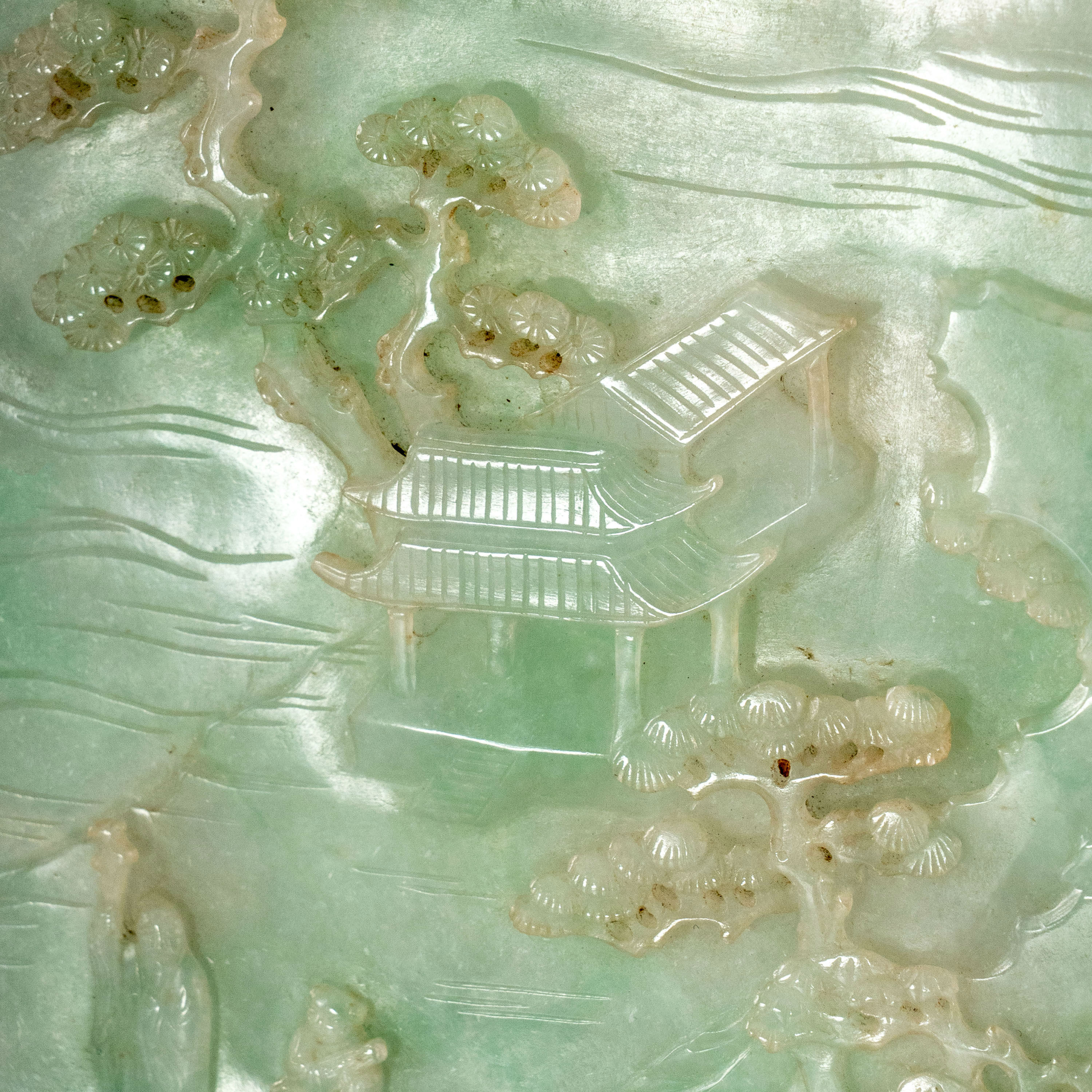 参阅:此类型画片有一例类似题材翡翠屏风可供参考,曾售于纽约苏富比2019年9月LOT10,成交价1,076,000 USD。