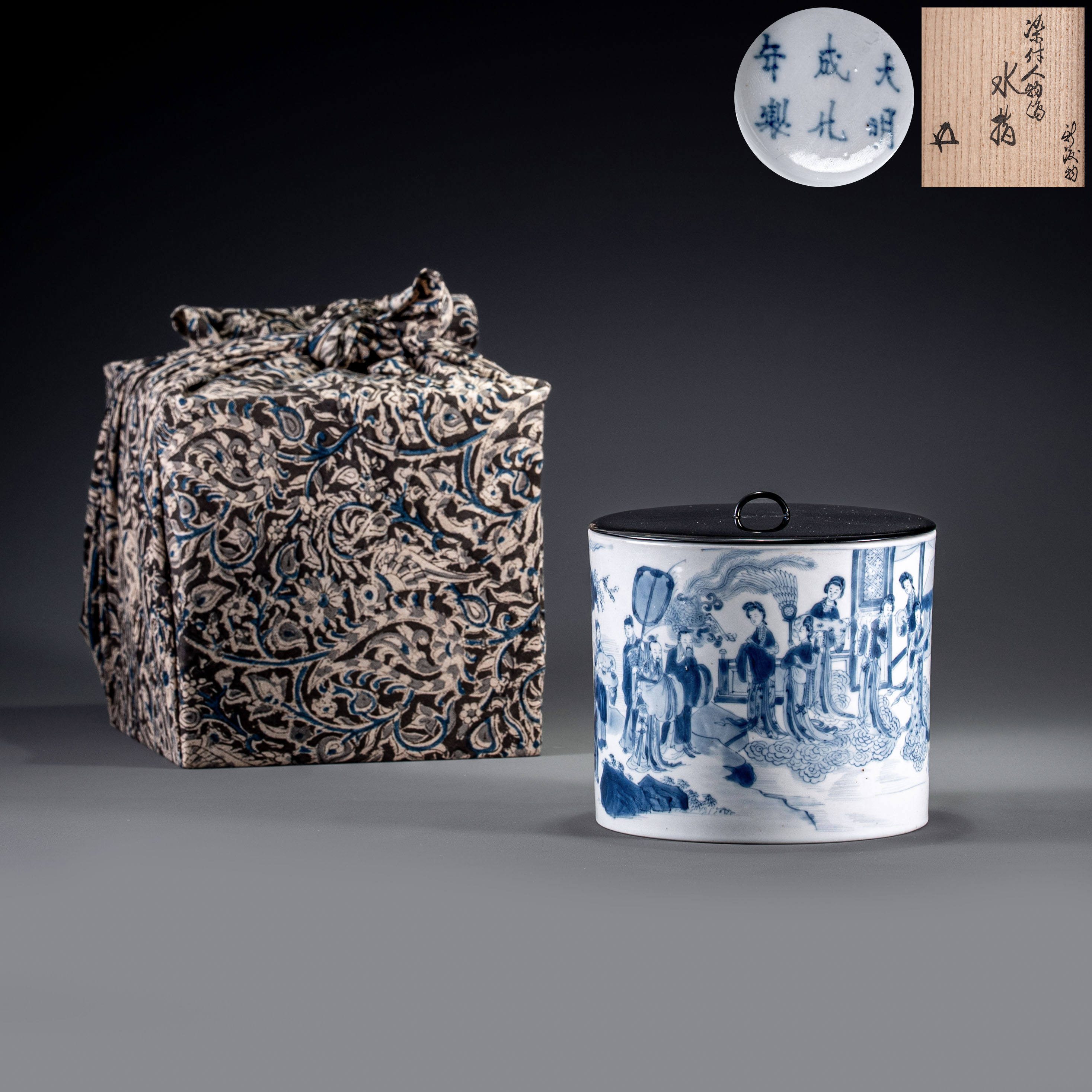 清 康熙青花唐明皇遊夜宮圖水指