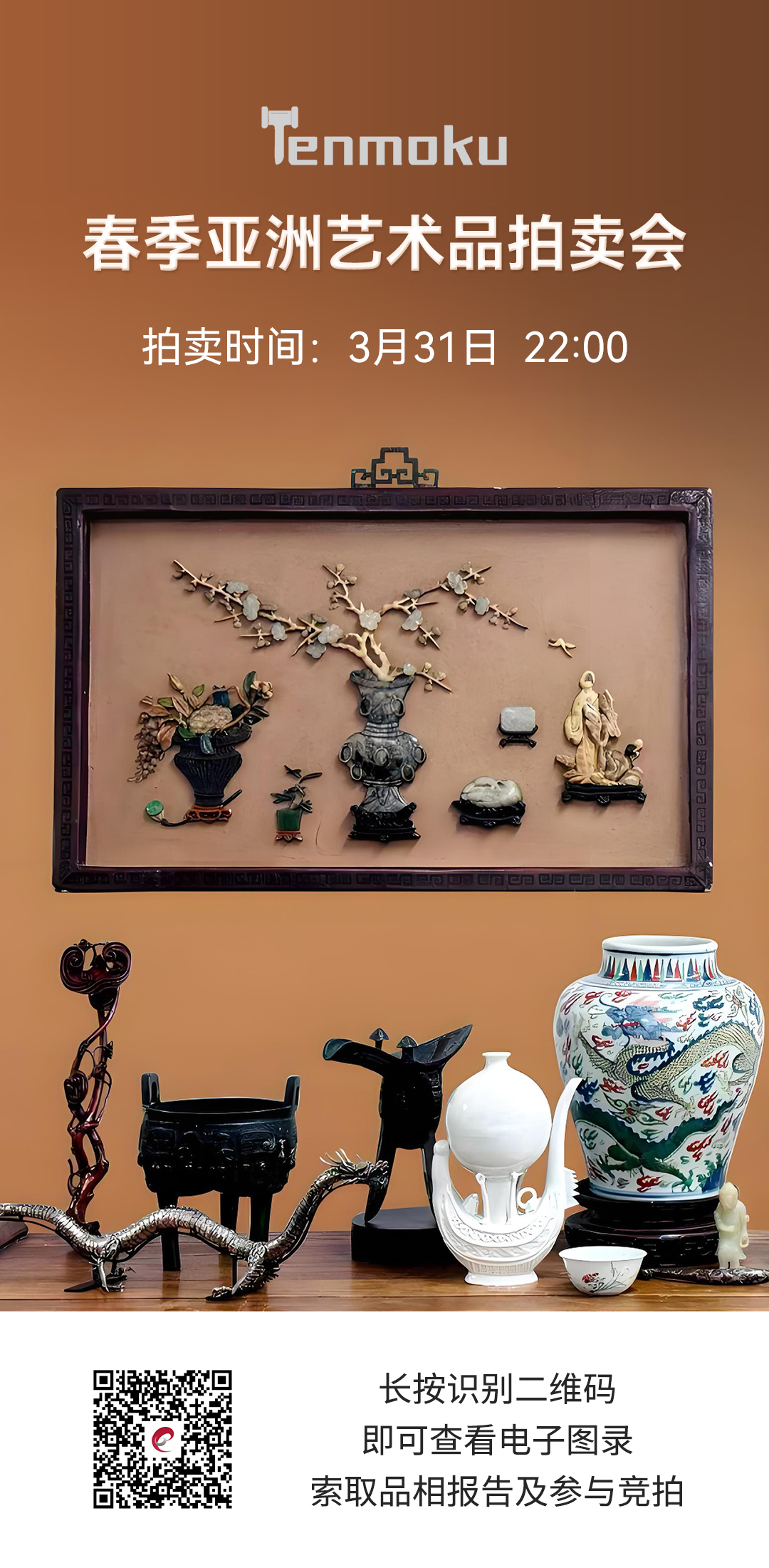 在美国深耕近三十年的Tenmoku拍卖行,一直是藏家寻觅北美生货的重要窗口。其2026春季亚洲艺术品拍卖会,将于北京时间3月31日晚10点举槌,呈献254件横跨千年的艺术遗珍。连拍臻全程直播,并提供实时同步竞拍技术和服务支持。