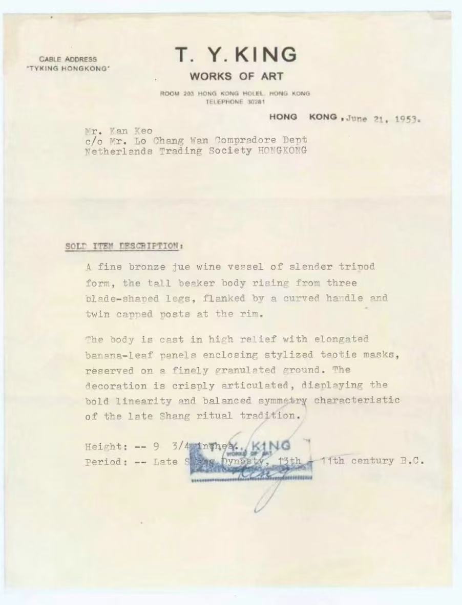 来源:香港T.Y. King Works of Art,1953年6月21日,附原始收据副本。