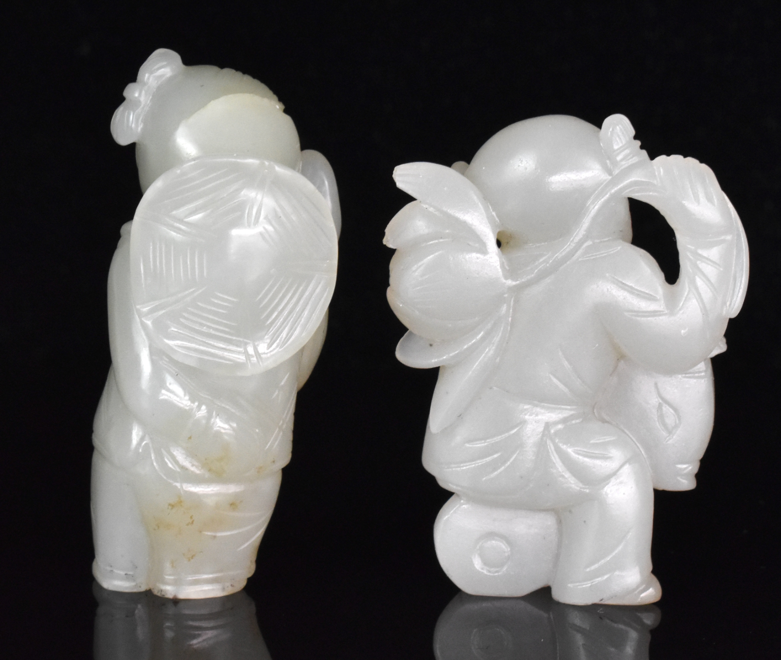 2 Chinese Jade Carved Boys Figure, 18/19th C.