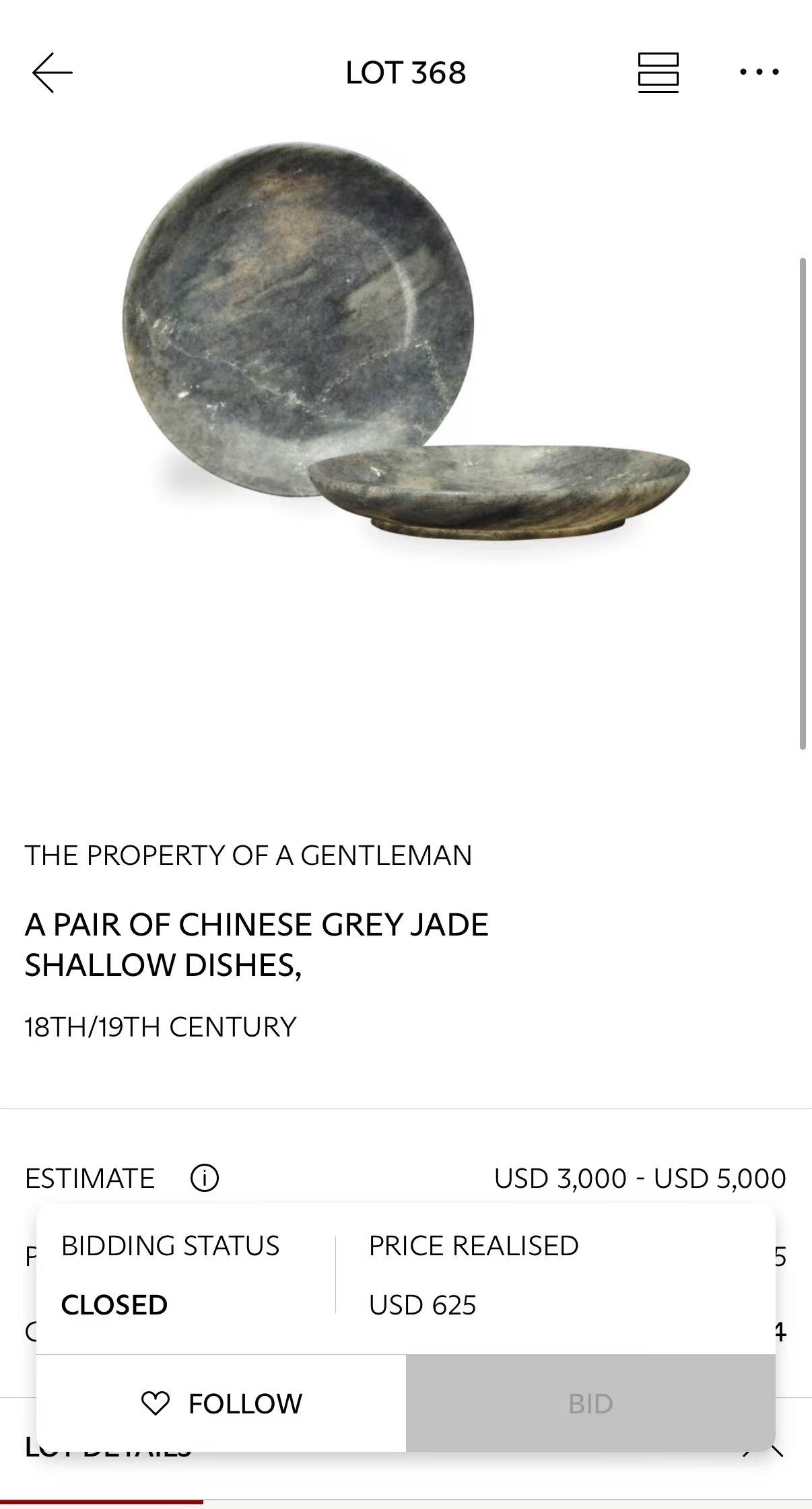 整场拍卖汇聚了各时期的代表性佳作。无论您心仪高古青铜的庄重铭文、宋瓷的简约美学,还是清代玉雕的细腻工巧,相信都能在此觅得所爱。尤为难得的是,多数拍品起拍价仅设于数百至数千美元区间,为藏家提供了极具诱惑力的“海淘”捡漏良机。