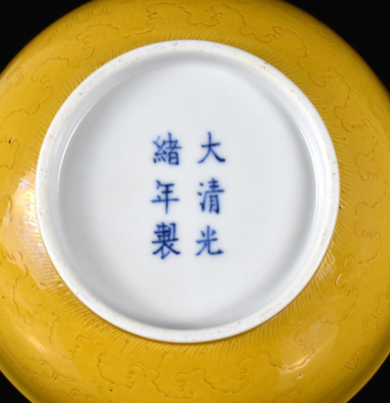 清光绪 黄釉刻海水云龙纹碗