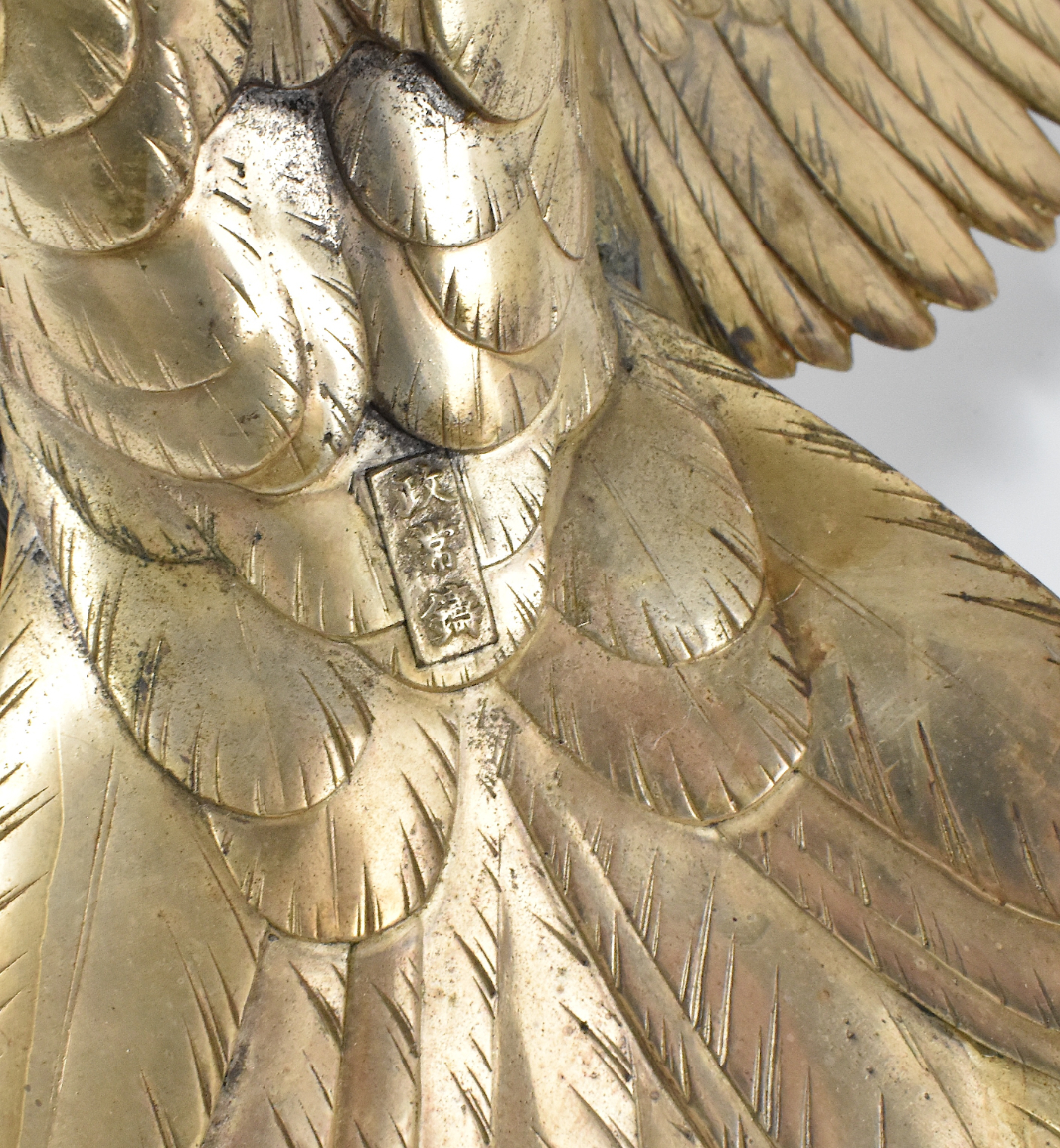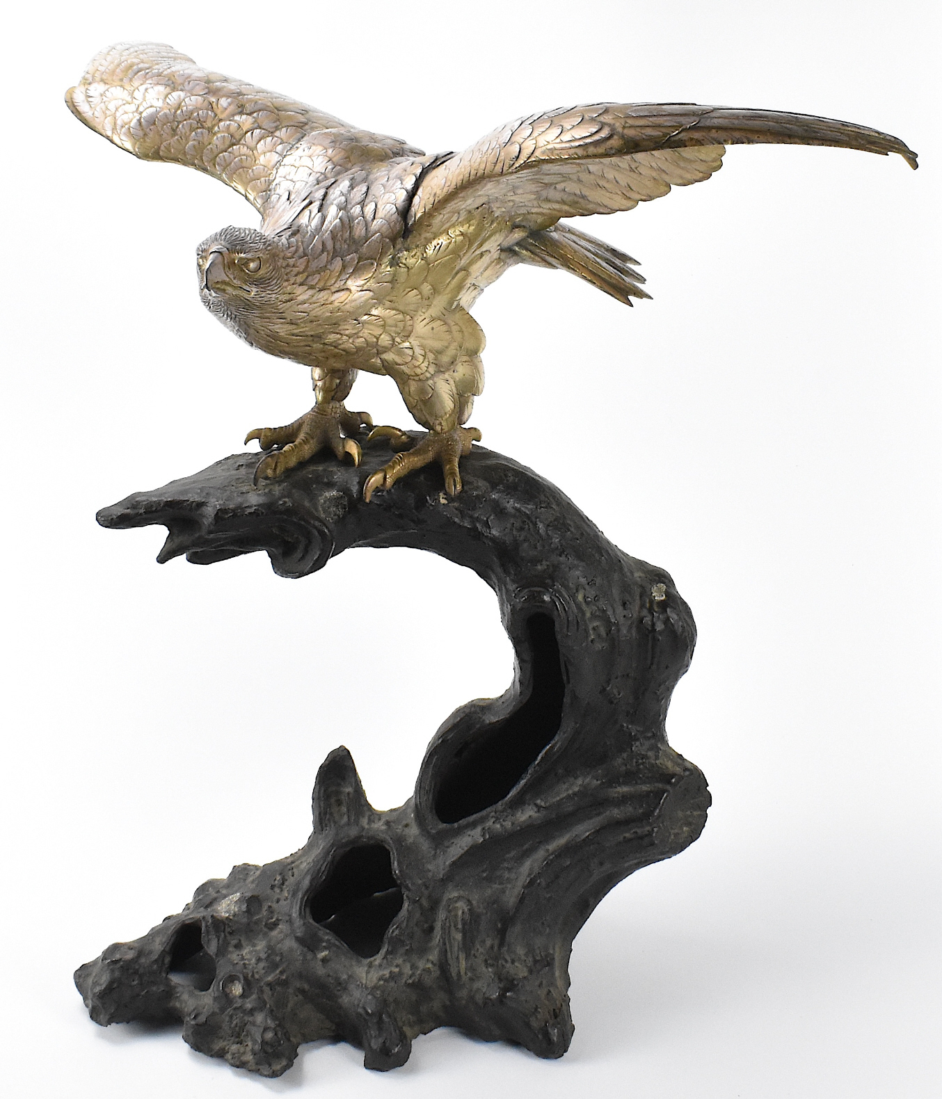 明治时期 银镀铜鹰立枝摆件