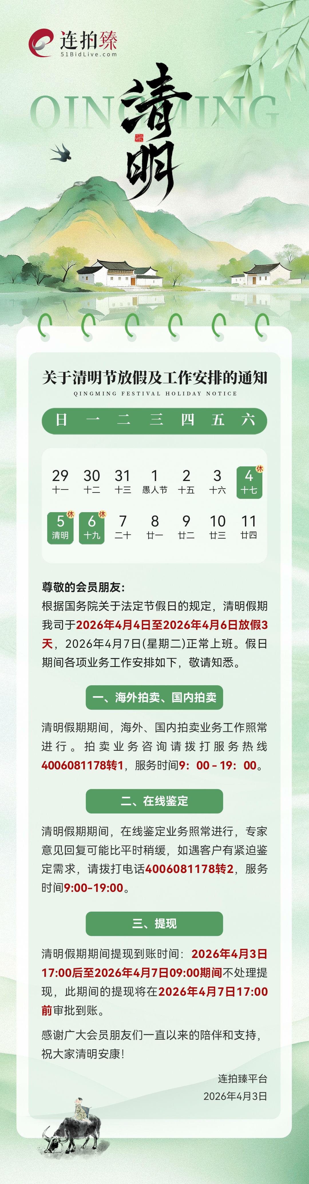 关于清明假期平台放假及工作安排的通知
