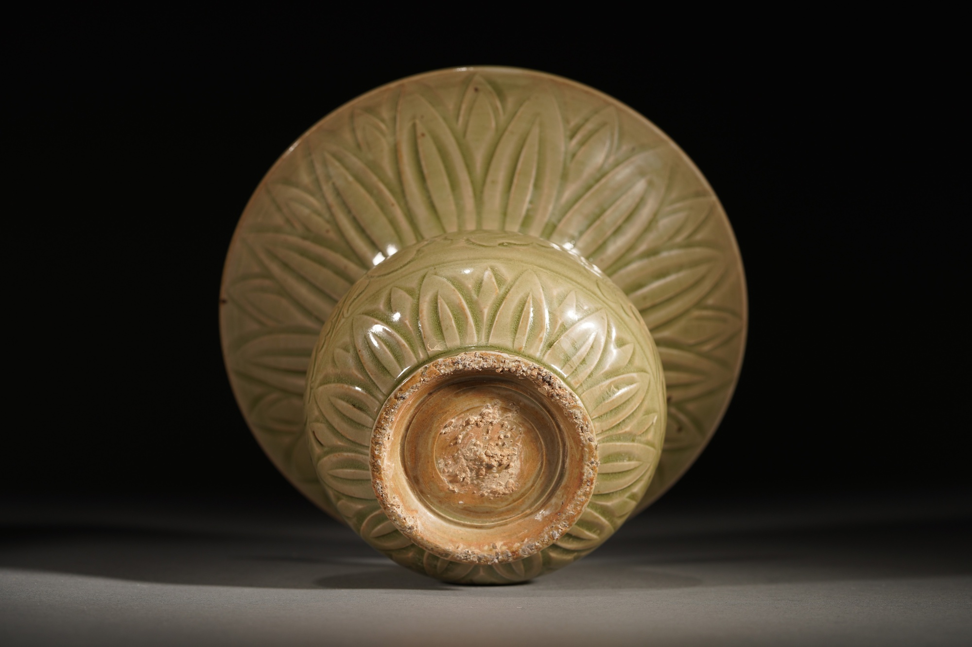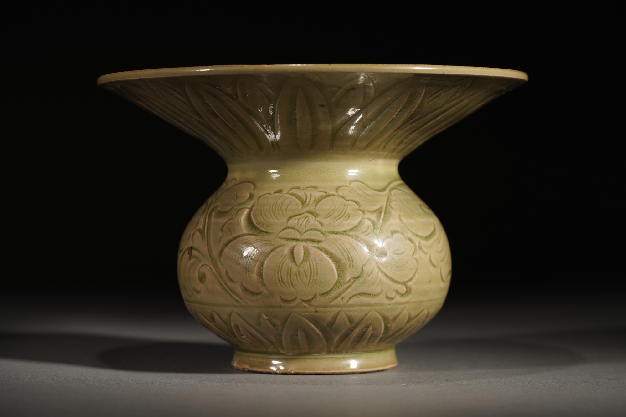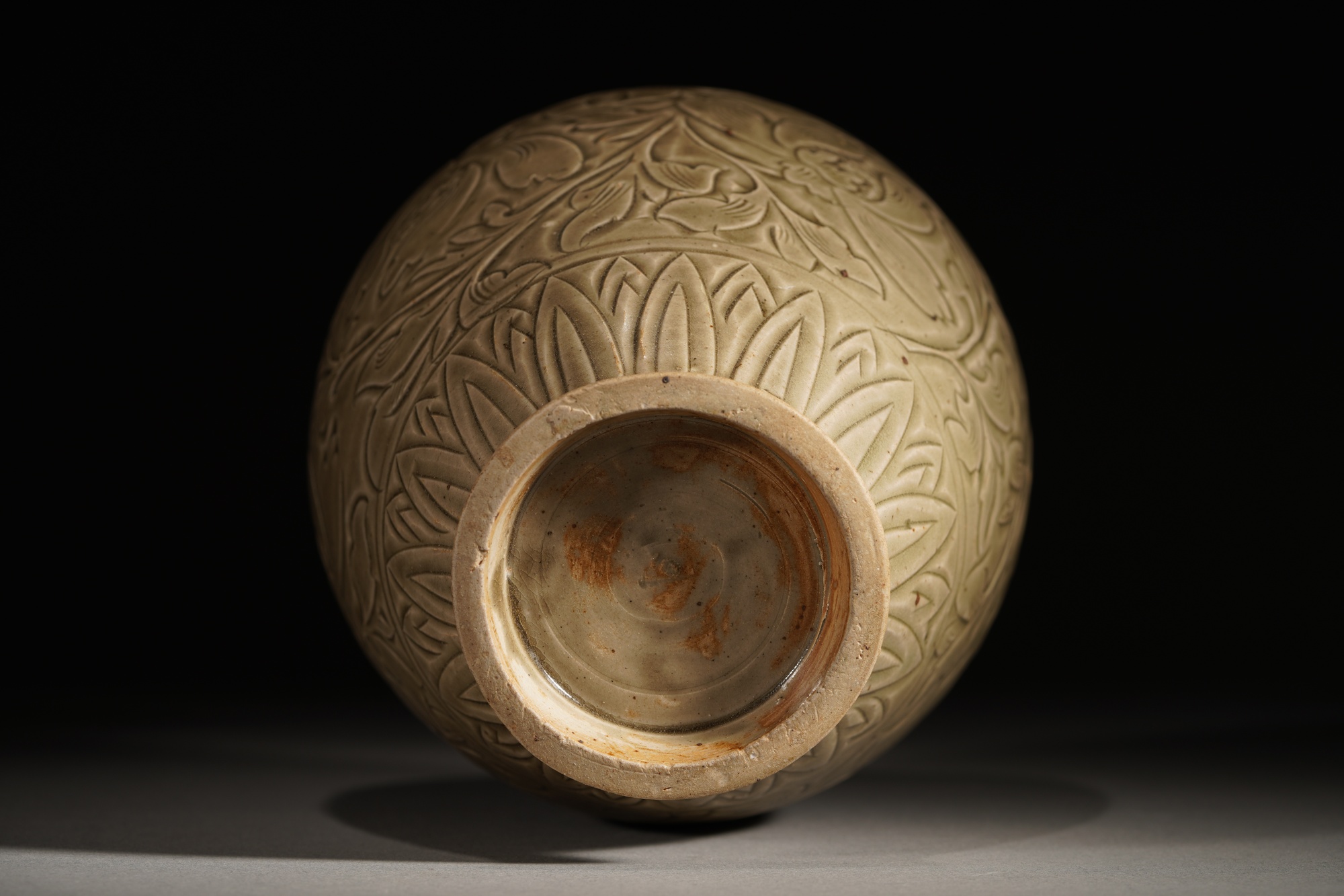 青磁刻花蓮花牡丹唐草紋光口瓶