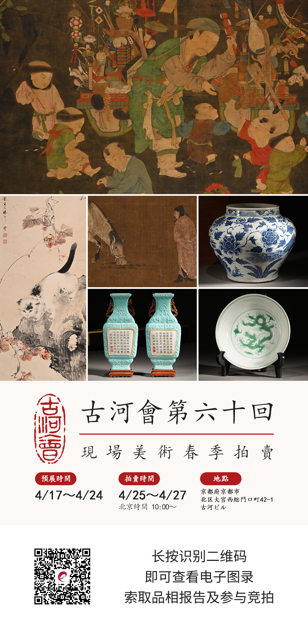 古河会拍卖行自2015年立足京都以来,一直以日本收藏界特有的审美标准为核心,重视作品的状态、来源与沉稳的品味取向。不追逐市场热度,而着眼于甄选「值得长期保存的作品」。这样的理念,也让中国古美术与书画在京都呈现出与一般市场截然不同的气质。