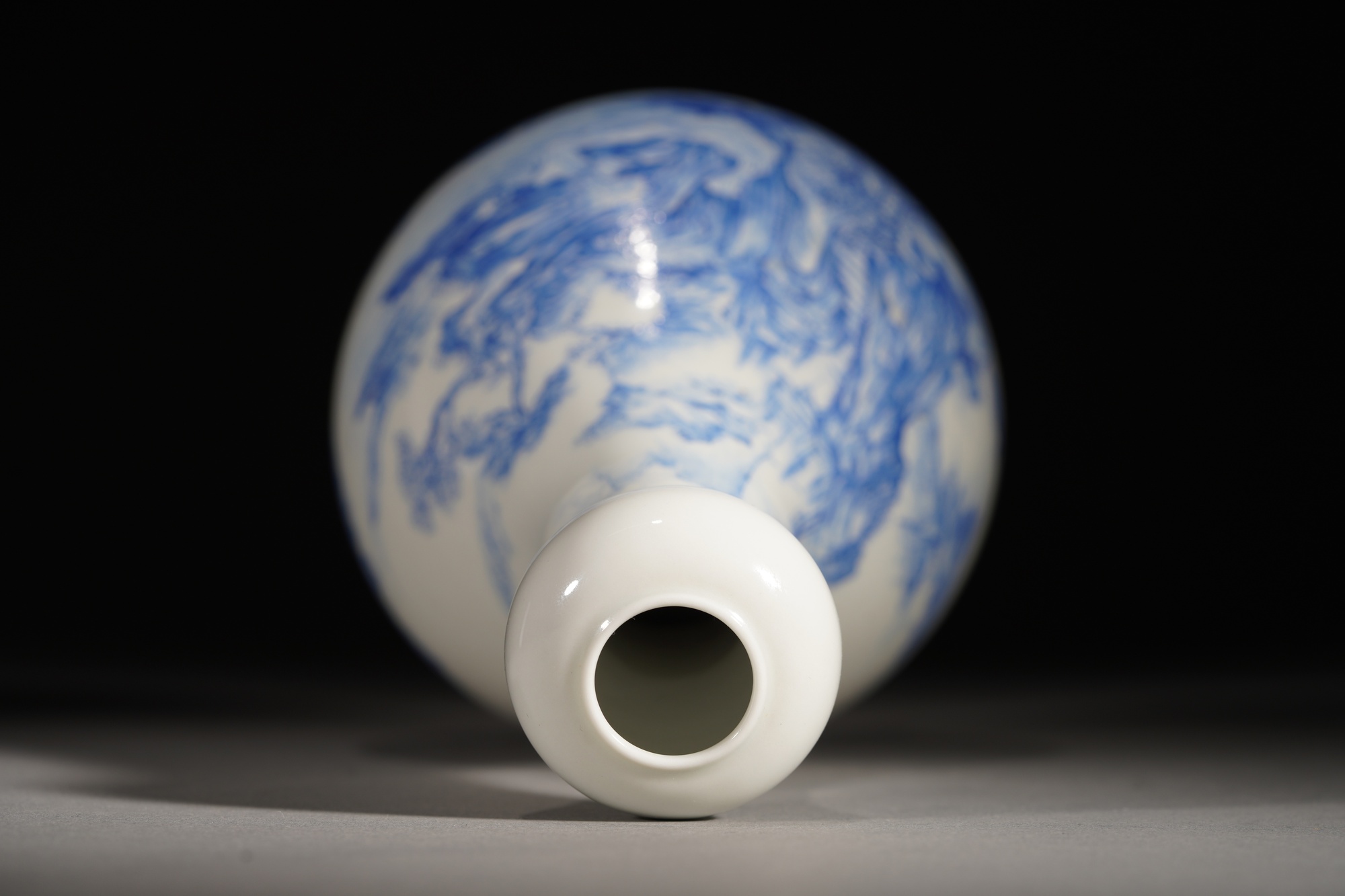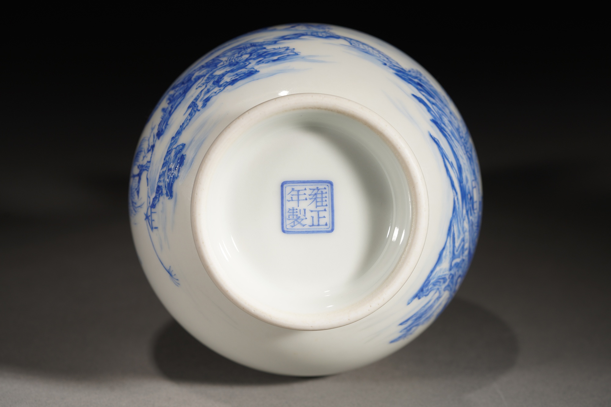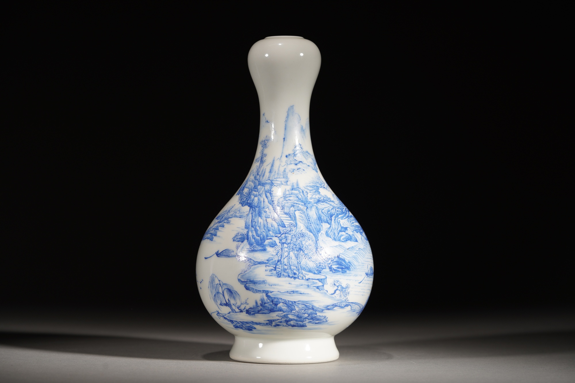 「雍正年製」款 藍釉詩文風景蒜頭瓶