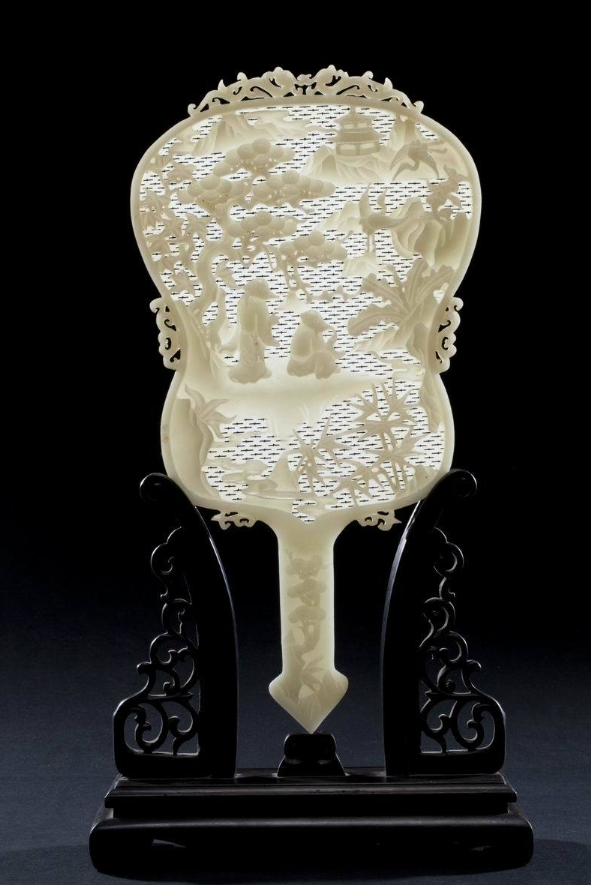 清乾隆 白玉海屋添筹宫扇