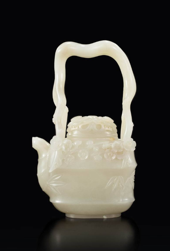 清中期 白玉岁寒三友提梁壶