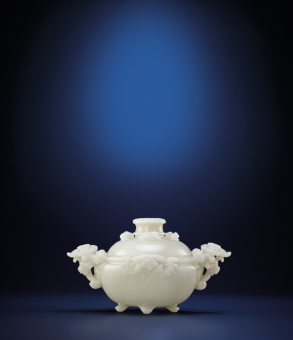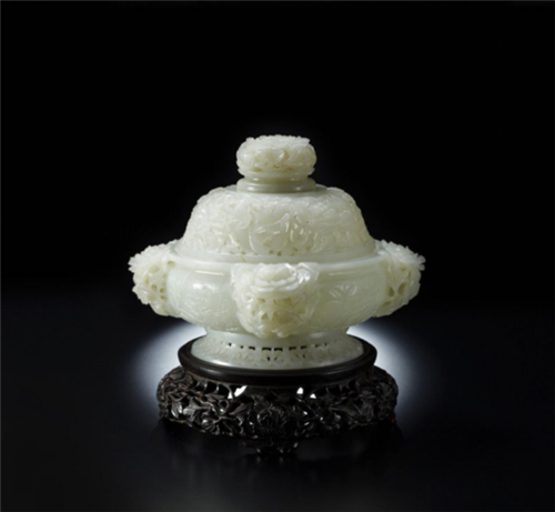 清乾隆-白玉雕牡丹四花钮盖炉