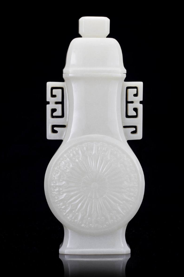 清乾隆 白玉兽耳螭首双身交结瓶