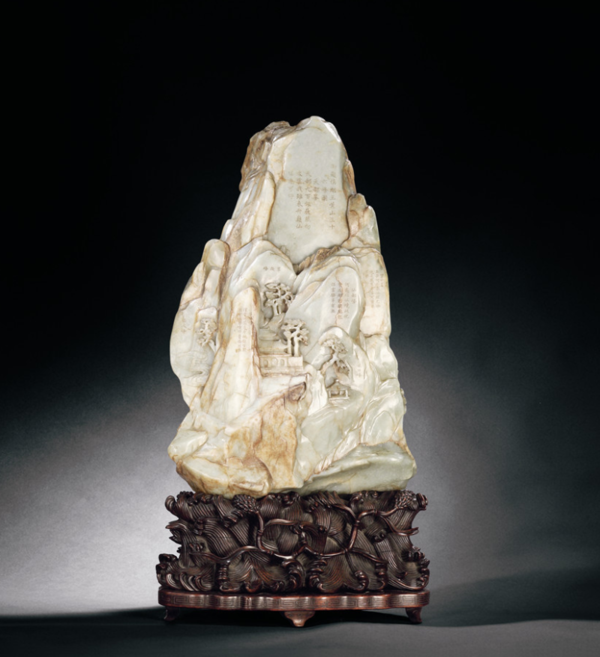 清乾隆-黑白玉巧雕御制诗山子