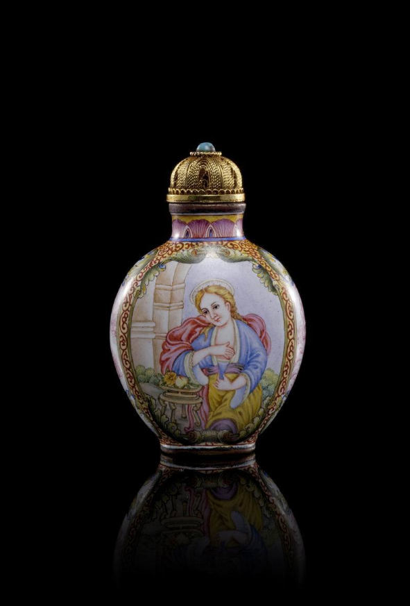 清雍正 铜胎珐琅彩仕女鼻烟壶