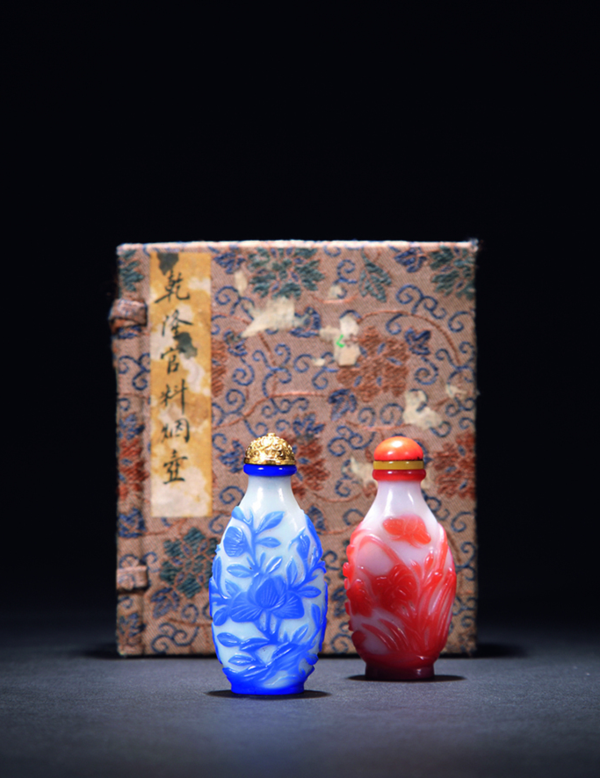 清乾隆 御制套料花卉烟壶一对